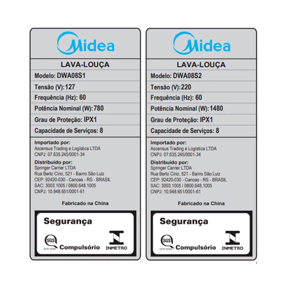 Lava Louça Midea Cinza 127V 8 Serviços DWA08S1A Lava-Louças Midea 8 Serviços Cinza 127V é perfeita para facilitar seu dia a dia na cozinha, unindo praticidade e economia. Compacta por fora e espaçosa por dentro, acomoda até 8 serviços e é ideal para lavar xícaras, pratos e panelas com sujeiras difíceis. Seu design moderno e acabamento em inox garantem durabilidade e sofisticação. Com programas como Pré-lavagem, Normal, Intensivo, Eco, Rápido e 1 Hora, adapta-se às suas necessidades. A função pré-lavagem elimina a sujeira pesada e odores, enquanto o programa Eco economiza água e energia. O Intensivo, a 70C, proporciona uma higienização profunda. A função de adiar início permite programar a lavagem em 2, 4 ou 8 horas. Seu painel de botões com display LED facilita o uso, e ela consome apenas 8 litros de água por ciclo. Acompanha mangueira de abastecimento, mangueira de drenagem, cestos e suporte para talheres. A Lava-Louças Midea 8 Serviços é a escolha ideal para quem busca eficiência, economia e praticidade.Especificações Técnicas:Marca: MideaModelo: DWA08S1Cor: Cinza Capacidade: 8 serviços Voltagem: 127VFrequencia: 60HzDisplay: LED Tipo de Tomada: 20A Consumo de água por ciclo: 8 L/cicloConsumo de energia por ciclo: 0,72 kwh/cicloProgramas de lavagem: Pré-lavagem, Normal, Intensivo, Eco, Rápido, 1hItens inclusos na embalagem: Lava-Louças, mangueira de abastecimento da água e mangueira de drenagem, cesto superior, cesto inferior e suporte para talheresDimensões Produto: 55 L x 59,5 A x 50 P cmDimensões Embalagem: 60,5 L x 66,2 A x 55 P cmPeso líquido: 25,5 kgPeso bruto: 30 kgGarantia: 12 Meses