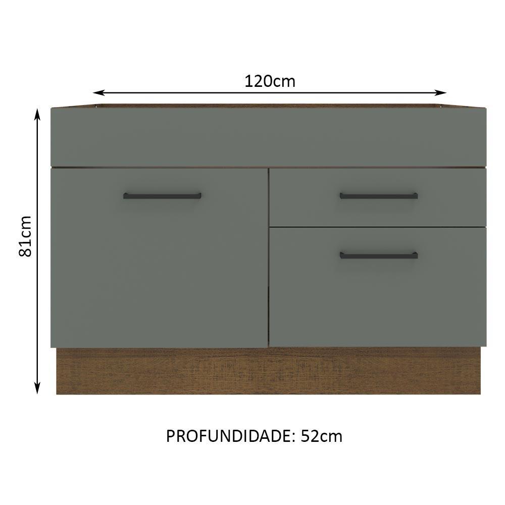Balcão de Pia Cozinha 1 Porta e 2 Gavetas Rustic/Cinza Agata Madesa
