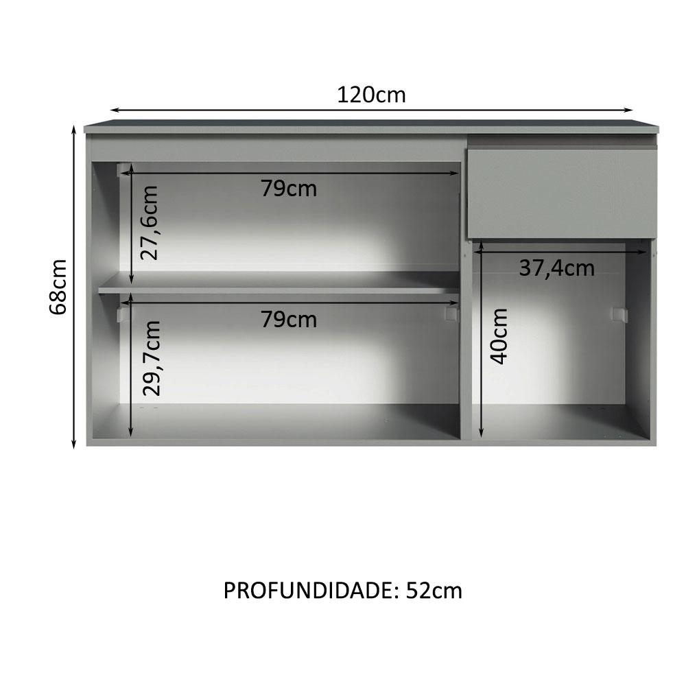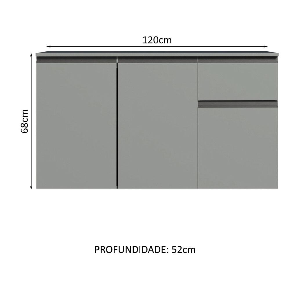 Balcão Armário de Cozinha 3 Portas 1 Gaveta Suspenso Cinza Nice Madesa