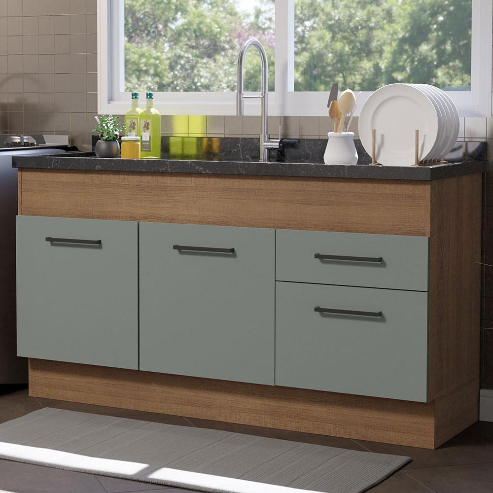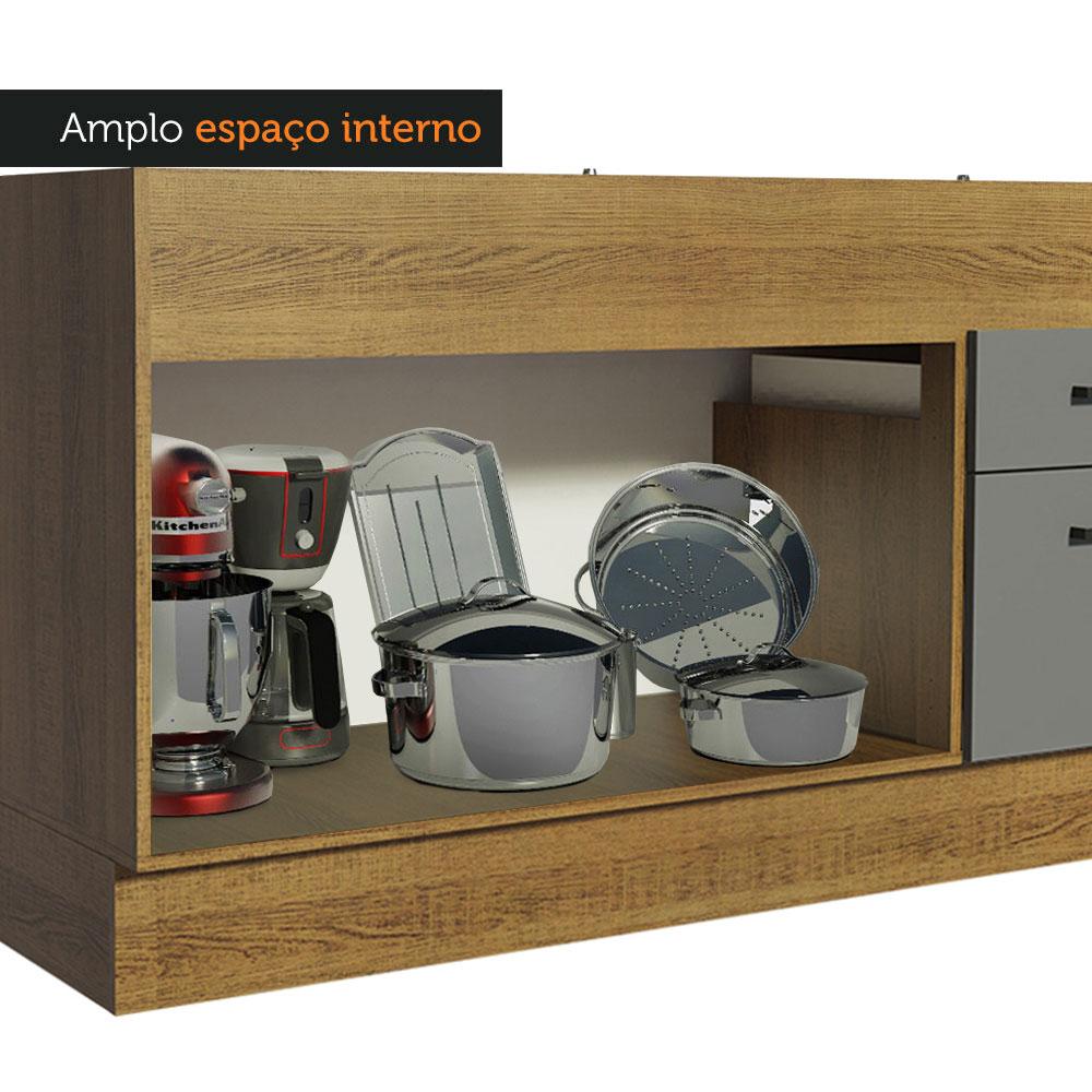 Balcão de Pia Cozinha 150 cm 2 Portas e 2 Gavetas (Sem Tampo e Pia) Rustic/Cinza Agata Madesa