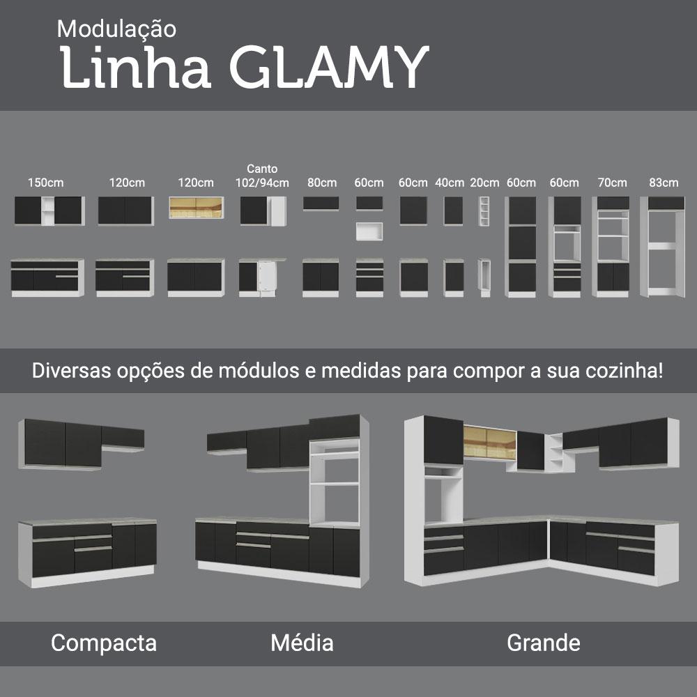 Este Armário Aéreo da linha Glamy da Madesa é funcional, espaçoso e fabricado com itens de qualidade superior.Possui duas portas e dois nichos abertos centrais. Com largura de 150 cm, é a opção perfeita para organizar todos os utensílios, louças e mantimentos da sua cozinha.Possui puxadores com perfil total em alumínio e dobradiças com amortecimento, que proporcionam um fechamento suave das portas.O acabamento da estrutura é branco e as portas são pretas. É feito com a Pintura Poliéster ecológica com 7 camadas de proteção, exclusiva da Madesa.Este armário pode ser combinado com outros módulos e com todas as cozinhas da linha Glamy da Madesa, tais como: Vicenza, Safira e Marina.Medidas totais:- 66 cm de altura- 150 cm de largura- 31 cm de profundidadeItens inclusos:- Um (1) Armário Aéreo com duas (2) portas e dois (2) nichosCódigo do produto: G2515373GLObs.:- Imagens meramente ilustrativas, a decoração não acompanha o produto- A Madesa não disponibiliza serviço de montagem-O produto segue com manual e todas as ferragens necessárias para a instalação1 – O produto é novo ou usado?R.: Todos os produtos da Madesa são novos, enviados da nossa fábrica diretamente para as casas de nossos clientes.2 – O produto vem montado? Se não, vocês realizam a montagem?R.: A Madesa não disponibiliza serviço de montagem. Todos os produtos seguem com manual de instalação e as ferragens necessárias. Alguns produtos possuem vídeo explicando o passo a passo da montagem.3 – Vocês possuem loja física? Posso retirar meu produto em mãos?R.: Não possuímos loja física, apenas loja virtual. Confira as opções de envio ao colocar o seu CEP.4 – Qual é o valor do envio? Posso pagar separadamente?R.: O valor do envio é calculado com base no peso e volume do produto, e no CEP de destino. Você pode calcular o valor e prazo de entrega no simulador.5 – A Madesa entrega em todo Brasil? Como é feita a entrega?R.: Sim, entregamos no Brasil inteiro através de transportadoras parceiras.6 – O produto acompanha Nota Fiscal?R.: Sim, todos os produtos são entregues com suas respectivas notas fiscais.7 – Os produtos possuem garantia?R.: Sim. A Madesa oferece 3 meses de garantia para defeitos de fabricação.A Madesa se dedica à sustentabilidade com várias iniciativas: temos uma usina própria para gerar energia que abastece uma de nossas fábricas. Selecionamos nossos fornecedores, priorizando aqueles que possuem um compromisso com a sustentabilidade e proteção do meio ambiente. Todo o plástico utilizado no setor produtivo é proveniente de reciclagem e as suas sobras são encaminhadas ao fornecedor que os recicla. Também investimos no desenvolvimento contínuo de nossos colaboradores e em ações educacionais que beneficiem a comunidade.