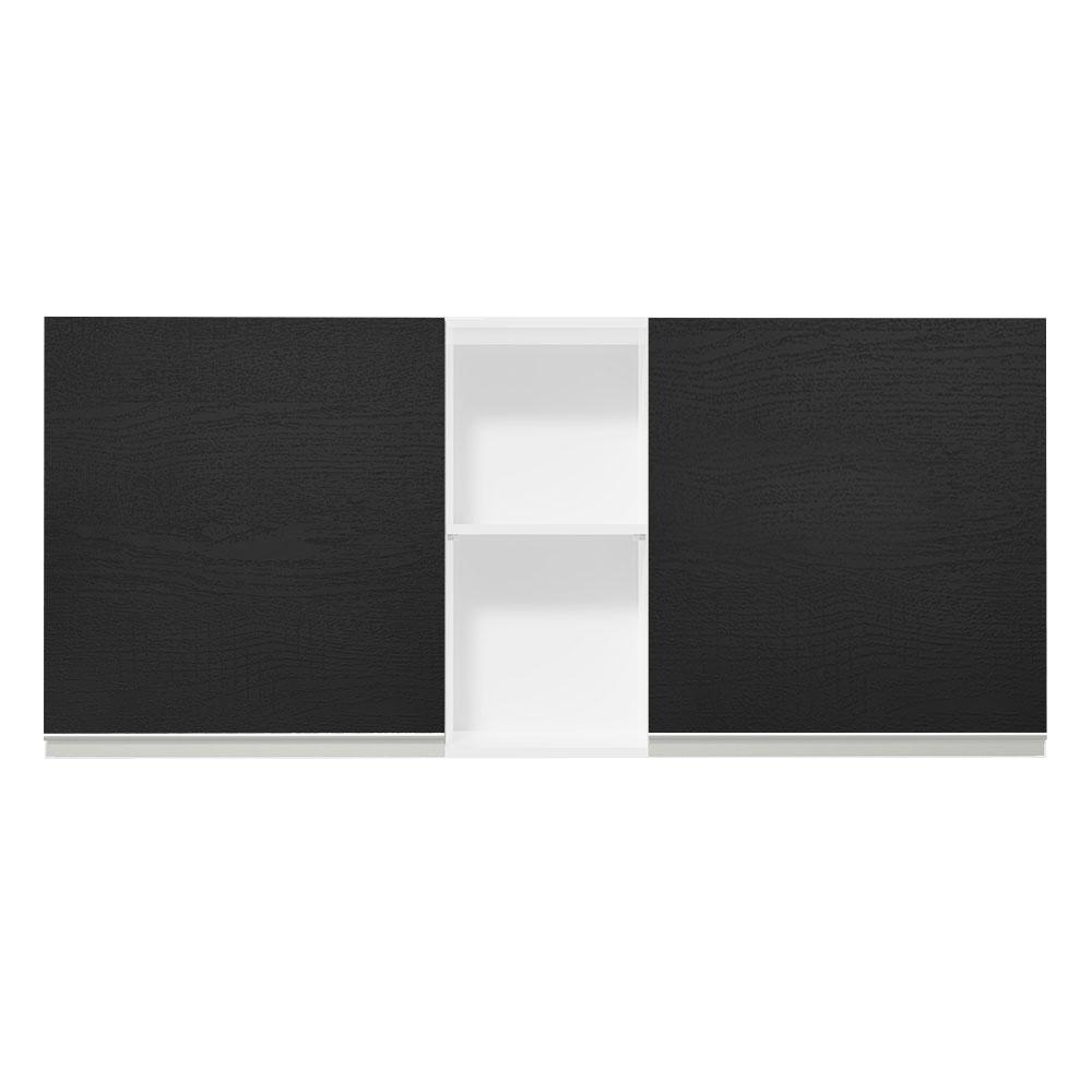 Armário de Cozinha Aéreo 150 cm 2 Portas e 2 Nichos Branco/Preto Glamy Madesa