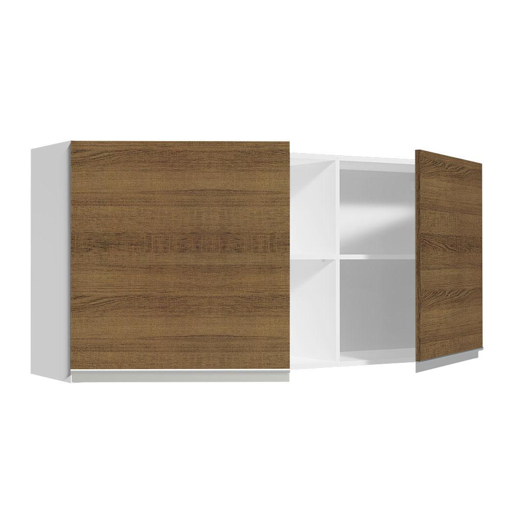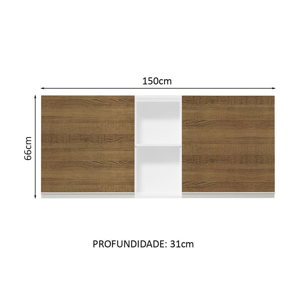 Armário de Cozinha Aéreo 150 cm 2 Portas e 2 Nichos Branco/Rustic Glamy Madesa