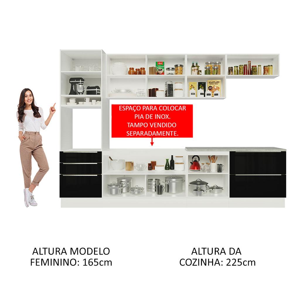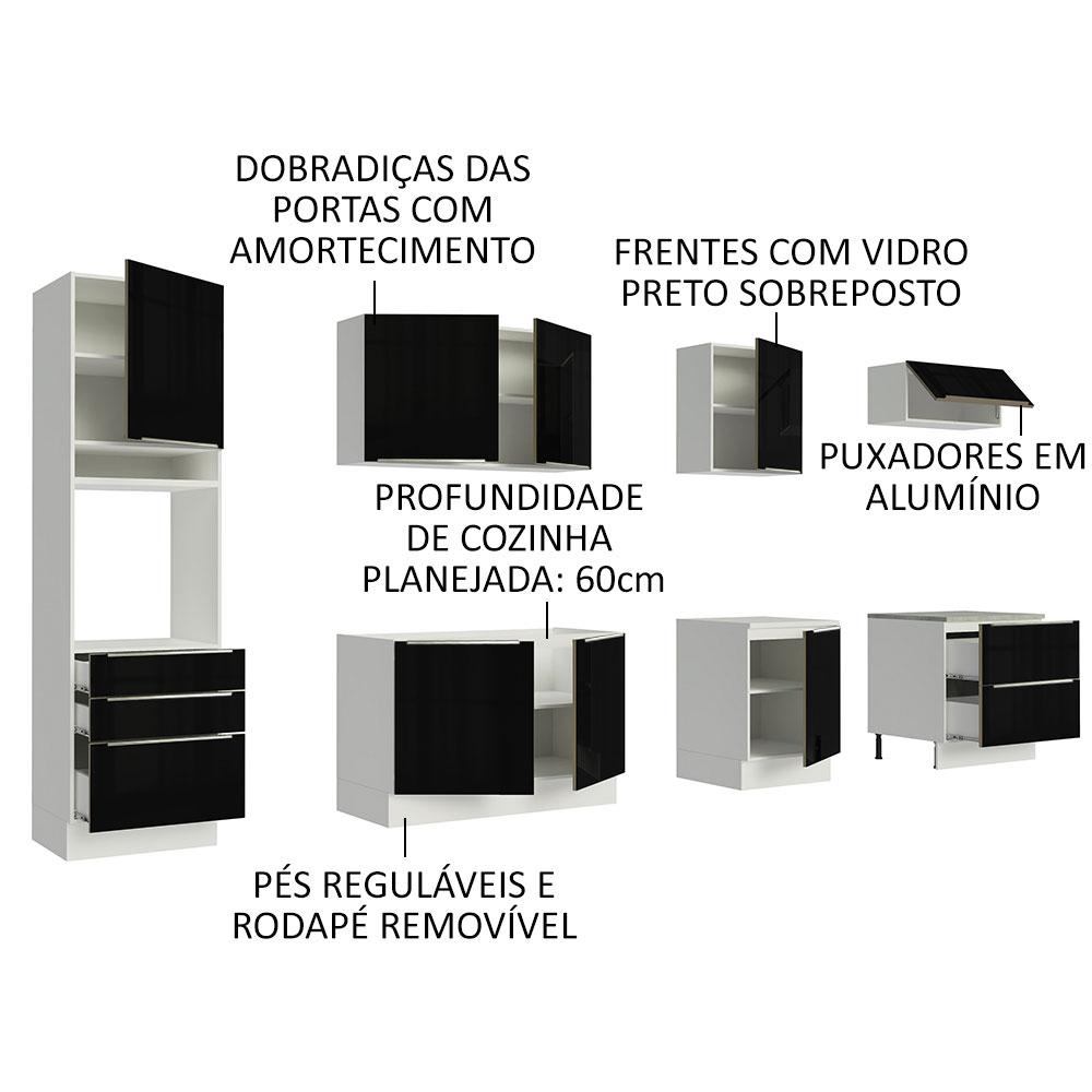 Cozinha Completa Madesa Lux 320004 com Armário e Balcão - Branco/Preto