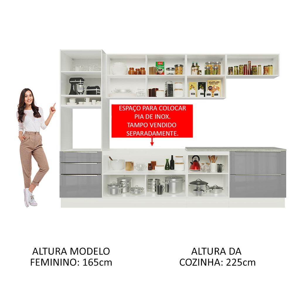 Cozinha Completa Madesa Lux 320004 com Armário e Balcão - Branco/Cinza