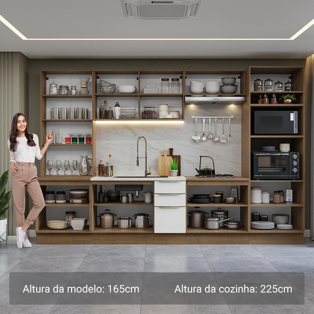 Armário de Cozinha Completa 340cm Rustic/Branco Veludo Lux Madesa 02