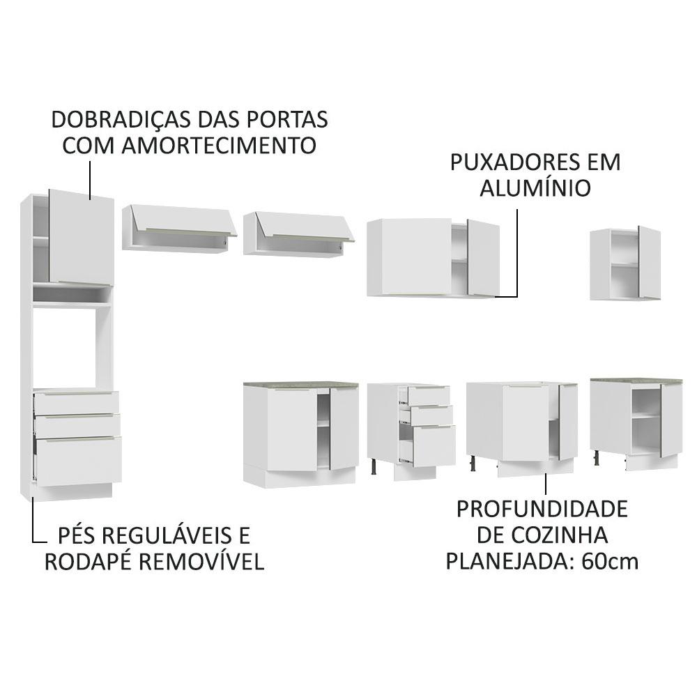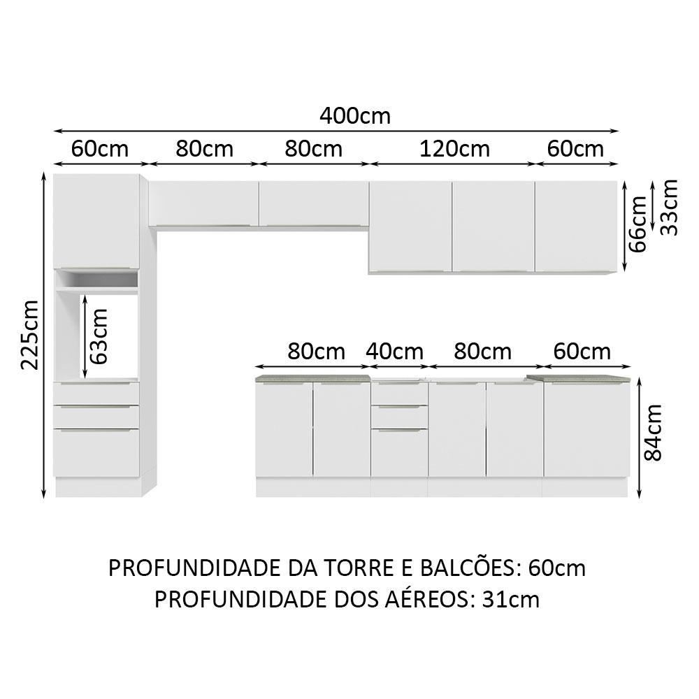 Armário de Cozinha Completa 400cm Branco Veludo Lux da Thauane Madesa