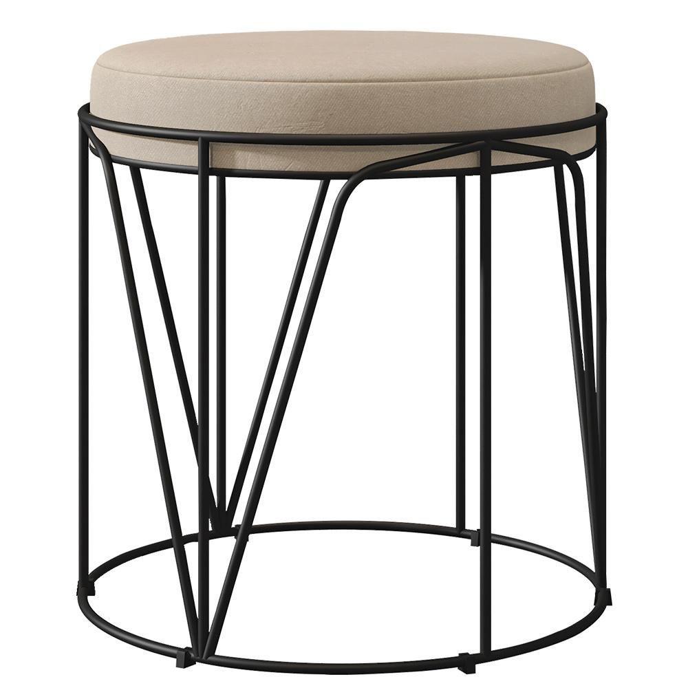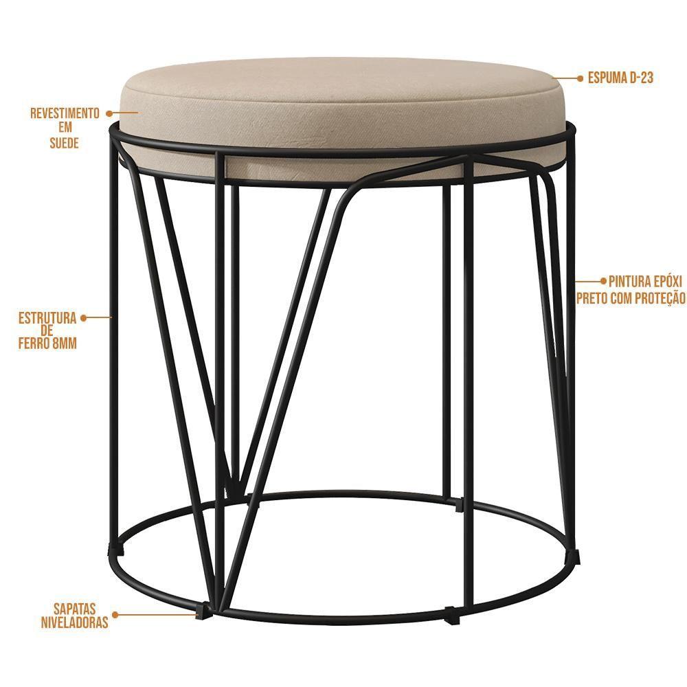 Puff Aramado Preto Zaya L02 Suede Bege