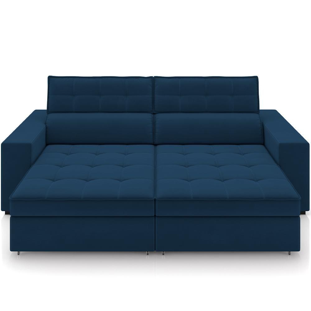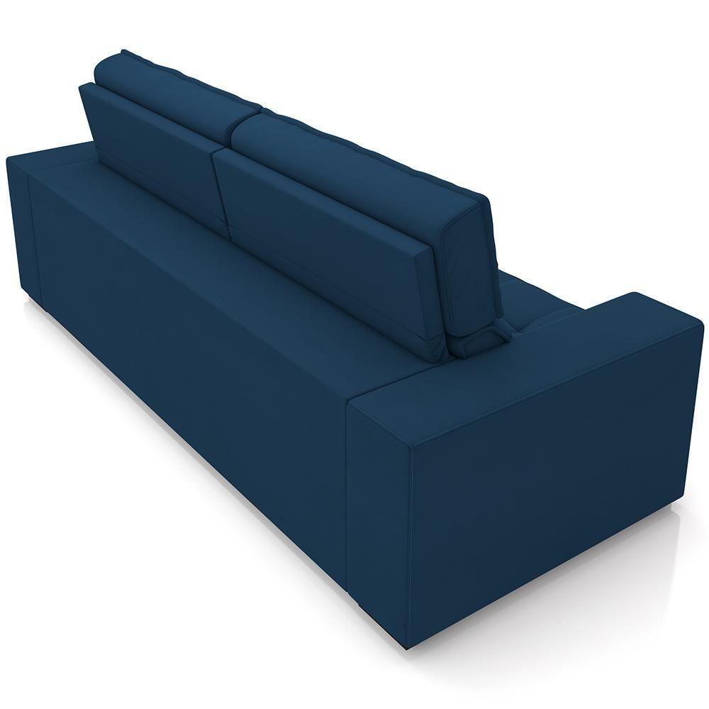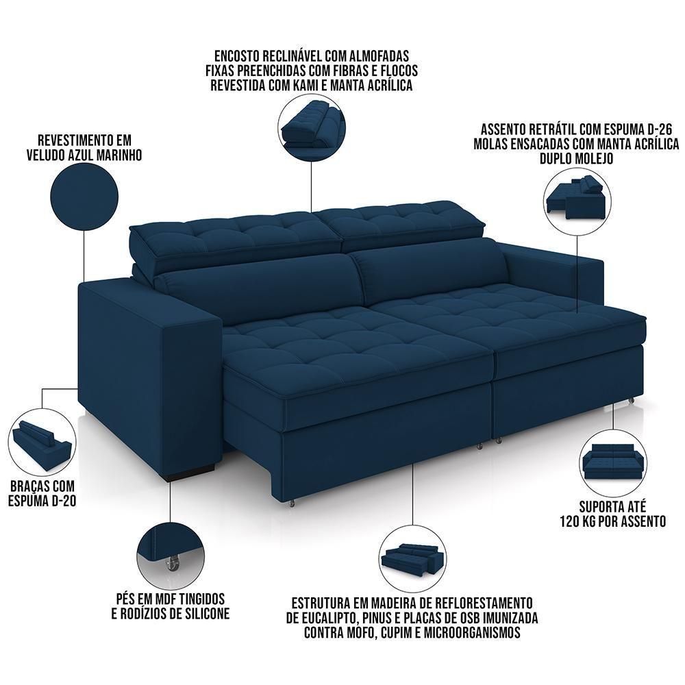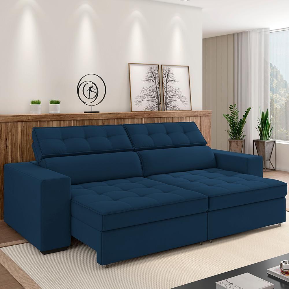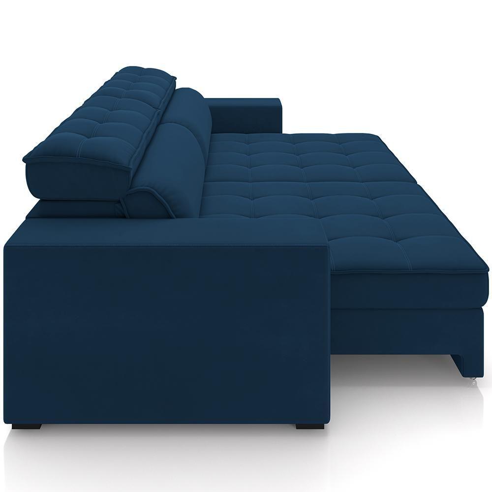 Sofá Retrátil Reclinável Para Sala De Estar Living 290cm Clara M03 Veludo Azul Marinho - Lyam Decor
