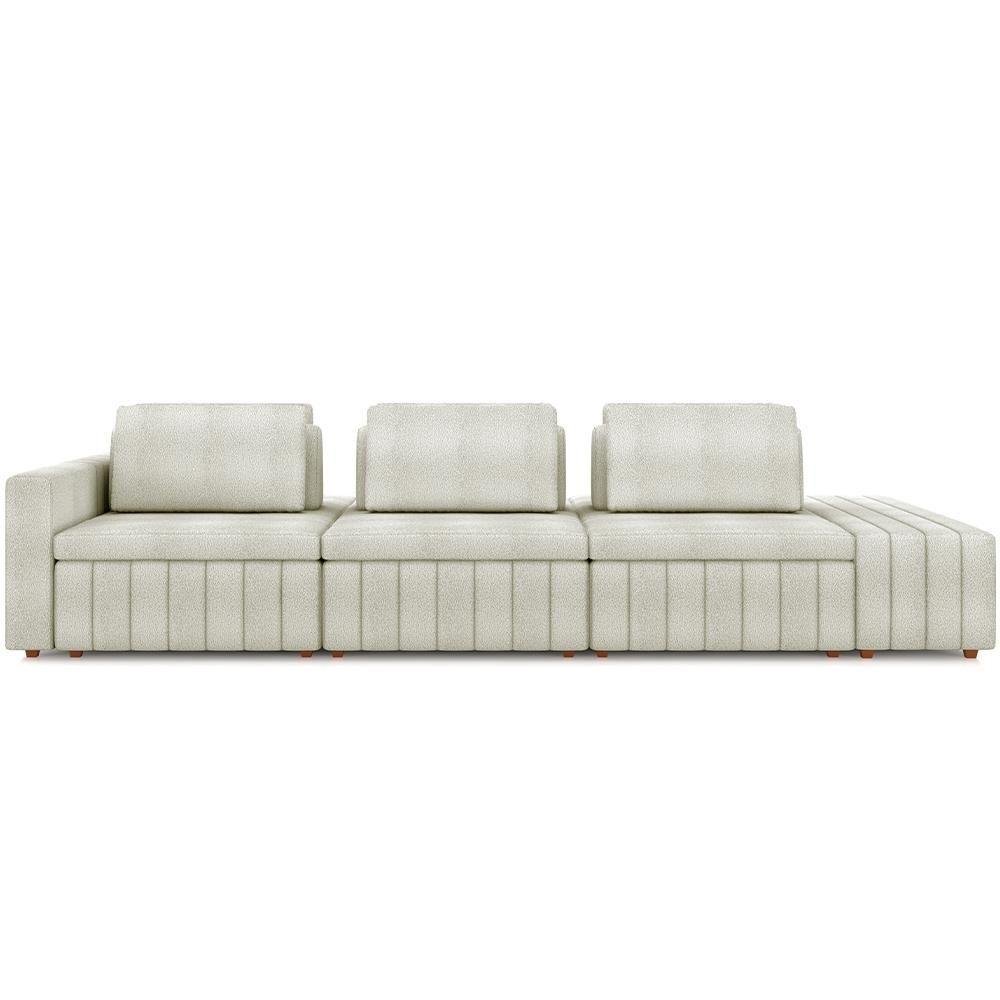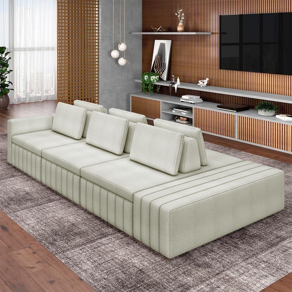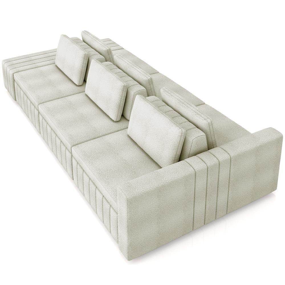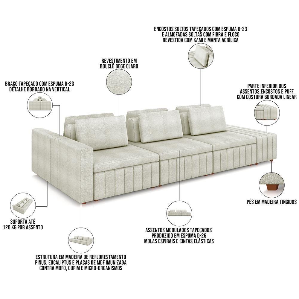 Sofá Ilha Com Puff Para Sala Living 395cm Amber M03 Bouclê Bege Claro - Lyam Decor