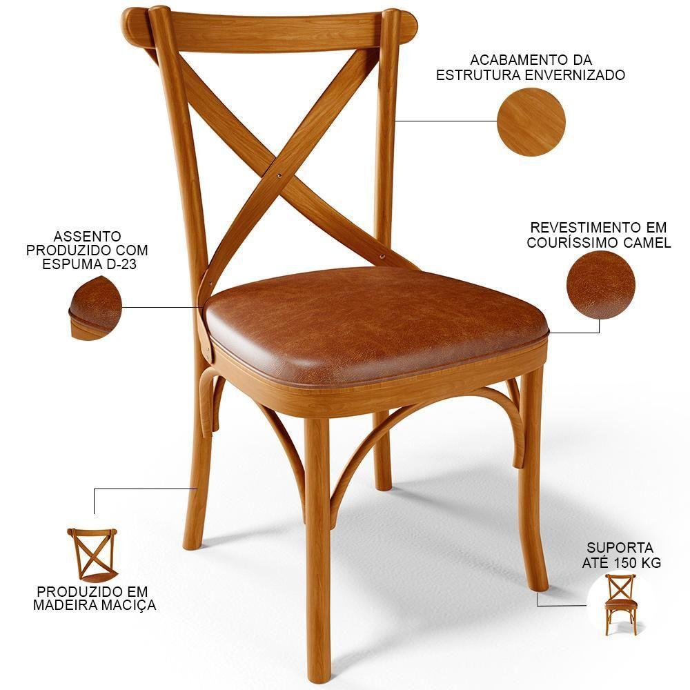 Kit 06 Cadeiras Para Sala De Jantar E Estar Living Estofada ávila L02 Couríssimo Camel - Lyam Inspirada no elegante mobiliário parisiense do século 19 e pensada para proporcionar máximo conforto, a Cadeira Ávila combina estilo e funcionalidade de uma maneira única. Estruturada em madeira maciça, possui detalhes curvilíneos que trazem suavidade e delicadeza a peça, seu acabamento envernizado a torna um mobiliário de destaque e trás durabilidade e confiança ao seu uso. Possui assento estofado, que proporciona ao seu usuário a sensação de comodidade ideal e ainda adiciona classe a qualquer ambiente. Seu design a torna uma peça versátil que abre portas a sua imaginação pois pode ser disposta em salas de jantar, estar, e espera, quartos, halls de entrada e cozinhas. Expresse seu bom gosto, e adquira já essa obra-prima da sofisticação! Dimensões do Produto (L x A x P) 49,5 x 86,5 x 55 cm Medidas Internas: Largura do assento: 44,5 cm Profundidade do assento: 43 cm Altura do encosto ao assento: 40 cm Largura total do encosto: 49,5 cm Altura do chão ao assento: 50 cm Largura do encosto: 38 cm Características: Estrutura em Madeira Maciça, com acabamento envernizado. Assento estofado com espuma D-23. Revestimento em Couríssimo na cor Camel, de ótima qualidade. Peso suportado de até 150 kg. - Produto entregue montado. - Por se tratar de estofado as medidas podem ter uma pequena variação de até 3 cm. - A tonalidade do produto real poderá ter ligeira variação devido o lote de tecidos. - A limpeza deve ser feita com pano levemente umedecido em água limpa, sem esfregar, não utilizar produtos abrasivos, desengordurantes, álcool ou solvente. Observações importantes: - Produto para uso residencial em ambiente interno, não devendo ficar exposto diretamente ao sol, calor e umidade excessivos. - Pode haver alguma diferença de tonalidade entre a imagem e o produto real, por conta do tratamento de imagens e a calibração de cores do seu monitor. - As imagens são meramente ilustrativas, não acompanham objetos de decoração e eletrônicos. - Ao receber a mercadoria, o cliente deve verificar as condições da embalagem, caso haja alguma não assine o de . - Montagem, desmontagem e outras instalações serão de responsabilidade do cliente. Não nos responsabilizamos, no ato da , por subir escadas/elevadores ou pelo por guincho em apartamentos. Eventuais despesas são de responsabilidade do comprador. - Confira as dimensões do produto e certifique-se de que passará normalmente por supostos elevadores, portas, escadas e/ou corredores de sua residência. Color: Caramelo | ColorFamily: Caramelo | ColorSimple: Caramelo | ColorSupplier: Caramelo | Material: Madeira Maciça | MaterialFamily: Madeira | Model: Ávila | OriginCountry: | OriginState: PR | ProductContents: 06 Cadeiras | ProductHeight: 86 cm | ProductInstructions: Produto para uso em ambiente interno, nao devendo ficar exposto ao sol, calor e umidade excessivos. | ProductLength: 55 cm | ProductWarranty: 90 dias após o do produto | ProductWeight: 48 kg | ProductWidth: 49 cm | SizeDescription: Altura: 86 cm Largura: 49 cm Profundidade: 55 cm | SupplierSimpleName: Kit 06 Cadeiras Para Sala de Jantar e Estar Living Estofada Ávila L02 Couríssimo Camel - Lyam