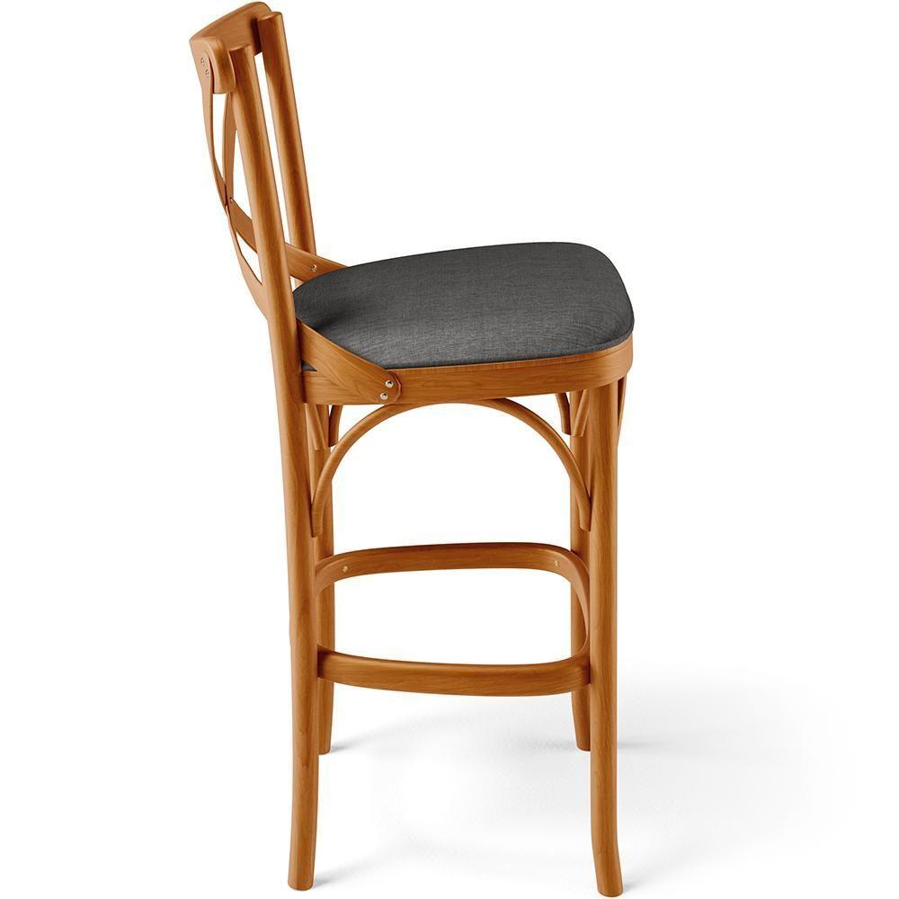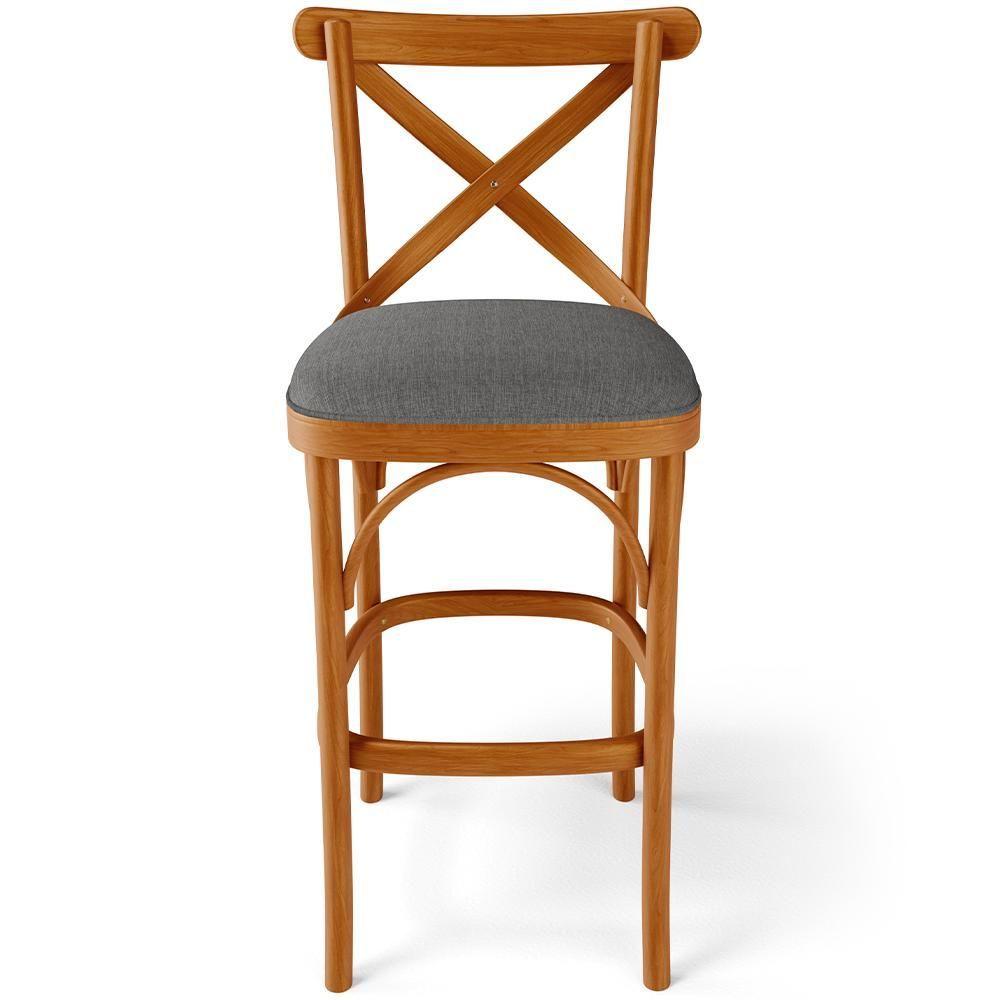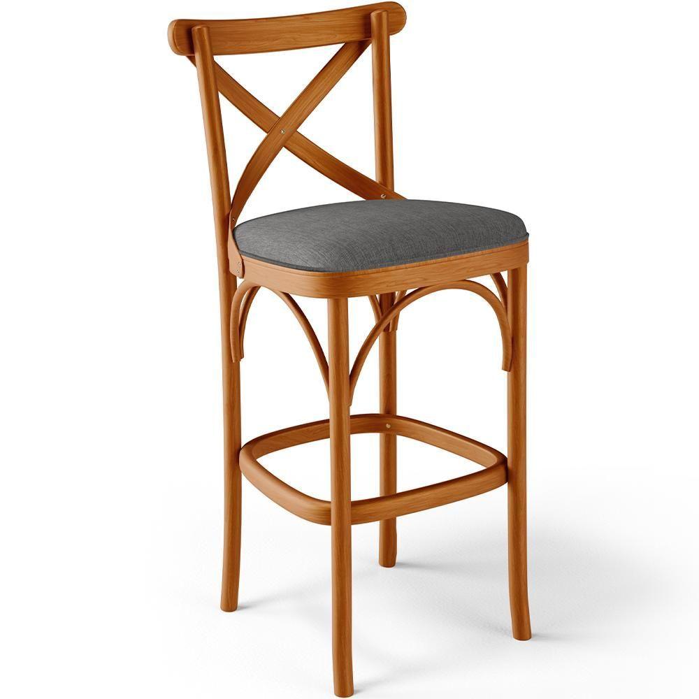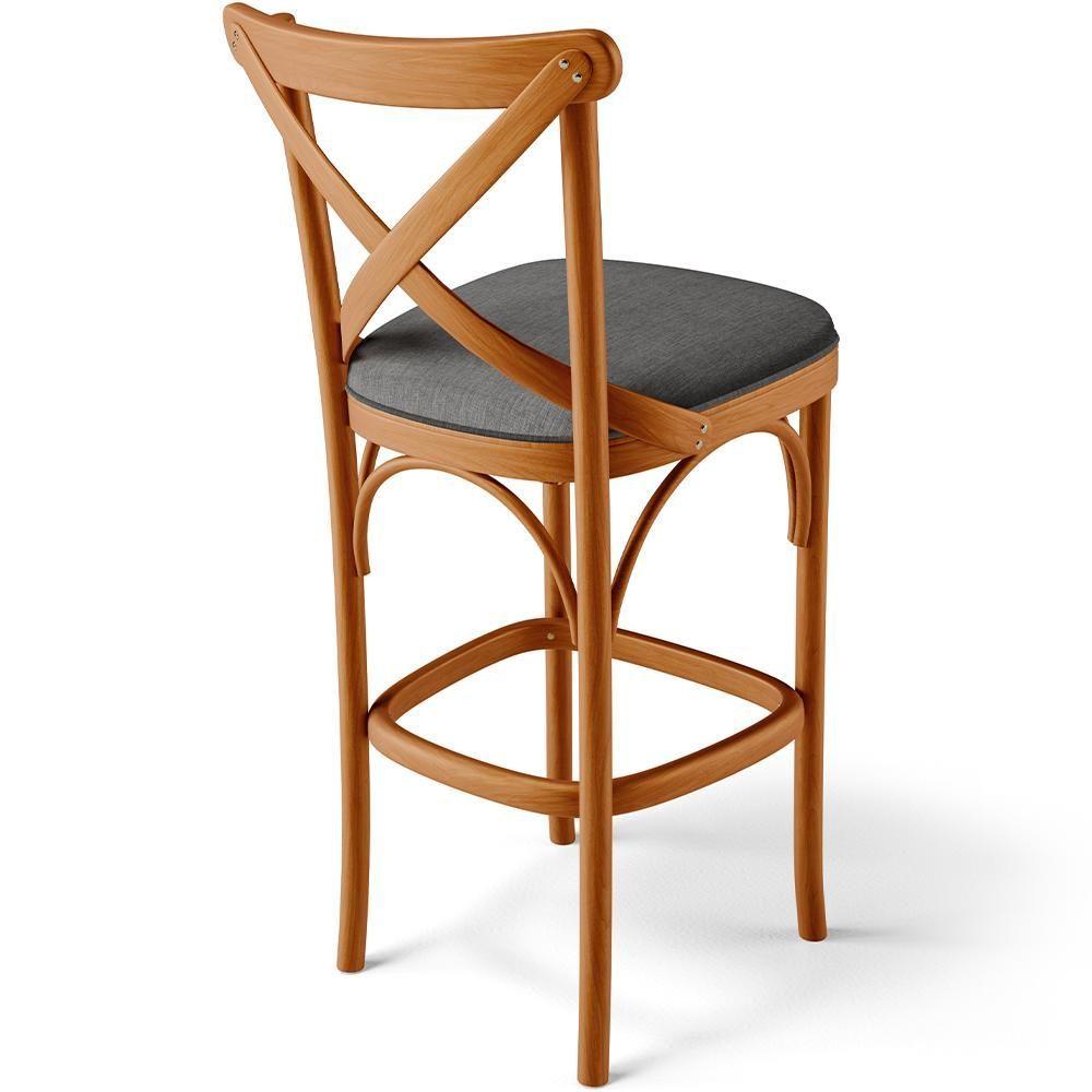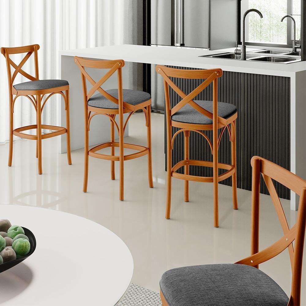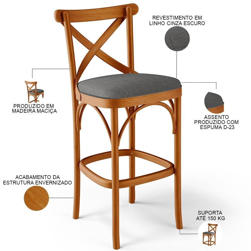 Kit 05 Banquetas Altas Cozinha Bancada Bar Sala Jantar Estofada ávila L02 Linho Cinza Escuro - Lyam
