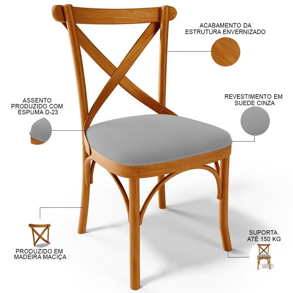 Kit 06 Cadeiras Para Sala De Jantar E Estar Living Estofada ávila L02 Suede Cinza - Lyam Inspirada no elegante mobiliário parisiense do século 19 e pensada para proporcionar máximo conforto, a Cadeira Ávila combina estilo e funcionalidade de uma maneira única. Estruturada em madeira maciça, possui detalhes curvilíneos que trazem suavidade e delicadeza a peça, seu acabamento envernizado a torna um mobiliário de destaque e trás durabilidade e confiança ao seu uso. Possui assento estofado, que proporciona ao seu usuário a sensação de comodidade ideal e ainda adiciona classe a qualquer ambiente. Seu design a torna uma peça versátil que abre portas a sua imaginação pois pode ser disposta em salas de jantar, estar, e espera, quartos, halls de entrada e cozinhas. Expresse seu bom gosto, e adquira já essa obra-prima da sofisticação! Dimensões do Produto (L x A x P) 49,5 x 86,5 x 55 cm Medidas Internas: Largura do assento: 44,5 cm Profundidade do assento: 43 cm Altura do encosto ao assento: 40 cm Largura total do encosto: 49,5 cm Altura do chão ao assento: 50 cm Largura do encosto: 38 cm Características: Estrutura em Madeira Maciça, com acabamento envernizado. Assento estofado com espuma D-23. Revestimento em Suede na cor Cinza, de ótima qualidade. Peso suportado de até 150 kg. - Produto entregue montado. - Por se tratar de estofado as medidas podem ter uma pequena variação de até 3 cm. - A tonalidade do produto real poderá ter ligeira variação devido o lote de tecidos. - A limpeza deve ser feita com pano levemente umedecido em água limpa, sem esfregar, não utilizar produtos abrasivos, desengordurantes, álcool ou solvente. Observações importantes: - Produto para uso residencial em ambiente interno, não devendo ficar exposto diretamente ao sol, calor e umidade excessivos. - Pode haver alguma diferença de tonalidade entre a imagem e o produto real, por conta do tratamento de imagens e a calibração de cores do seu monitor. - As imagens são meramente ilustrativas, não acompanham objetos de decoração e eletrônicos. - Ao receber a mercadoria, o cliente deve verificar as condições da embalagem, caso haja alguma não assine o de . - Montagem, desmontagem e outras instalações serão de responsabilidade do cliente. Não nos responsabilizamos, no ato da , por subir escadas/elevadores ou pelo por guincho em apartamentos. Eventuais despesas são de responsabilidade do comprador. - Confira as dimensões do produto e certifique-se de que passará normalmente por supostos elevadores, portas, escadas e/ou corredores de sua residência. Color: Cinza | ColorFamily: Cinza | ColorSimple: Cinza | ColorSupplier: Cinza | Material: Madeira Maciça | MaterialFamily: Madeira | Model: Ávila | OriginCountry: | OriginState: PR | ProductContents: 06 Cadeiras | ProductHeight: 86 cm | ProductInstructions: Produto para uso em ambiente interno, nao devendo ficar exposto ao sol, calor e umidade excessivos. | ProductLength: 55 cm | ProductWarranty: 90 dias após o do produto | ProductWeight: 48 kg | ProductWidth: 49 cm | SizeDescription: Altura: 86 cm Largura: 49 cm Profundidade: 55 cm | SupplierSimpleName: Kit 06 Cadeiras Para Sala de Jantar e Estar Living Estofada Ávila L02 Suede Cinza - Lyam