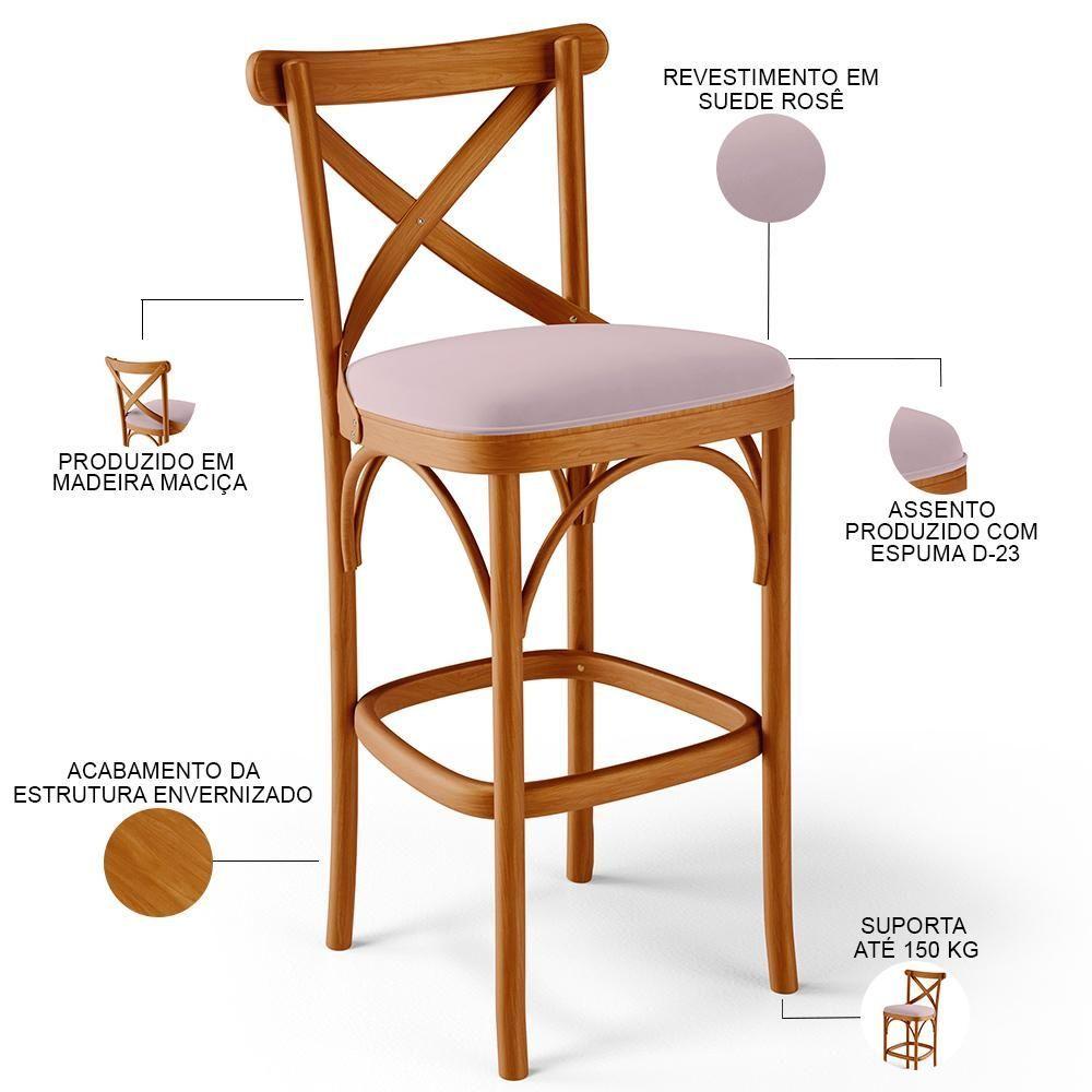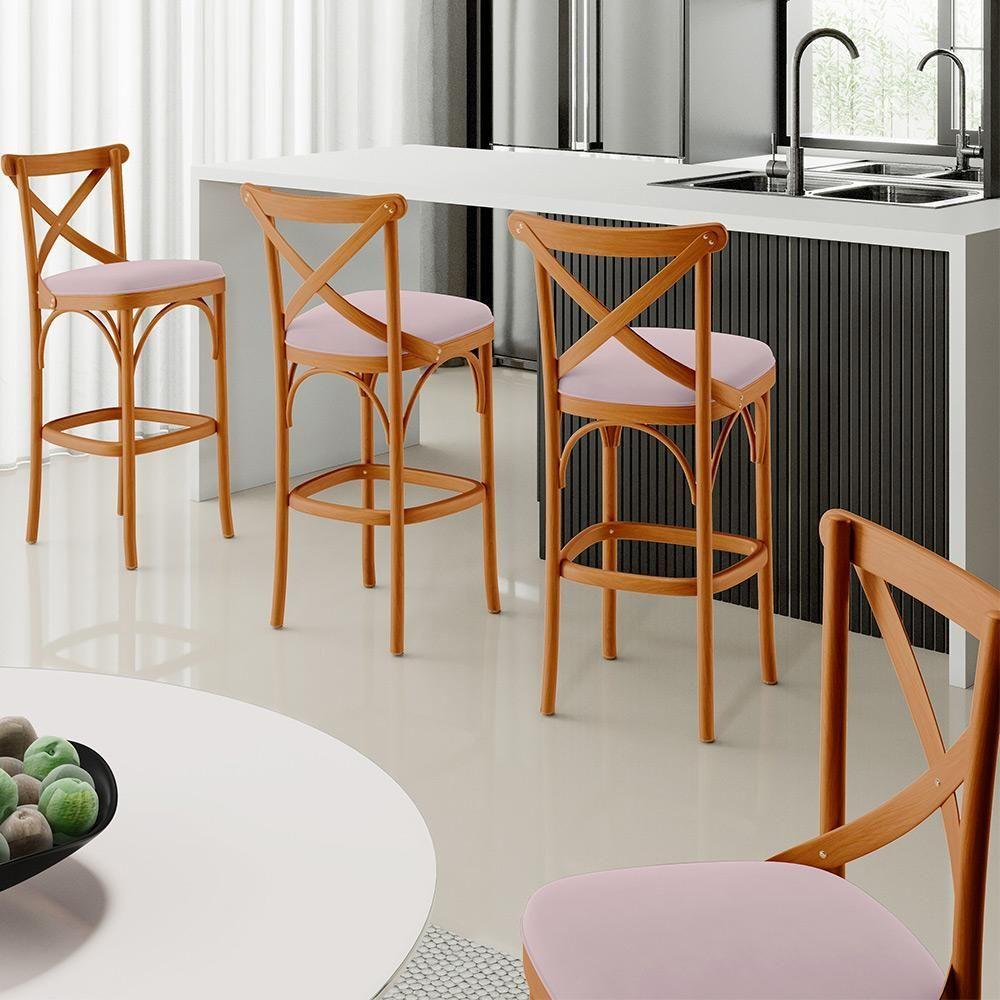 Kit 05 Banquetas Altas Cozinha Bancada Bar Sala De Jantar Estofada ávila L02 Suede Rosê - Lyam
