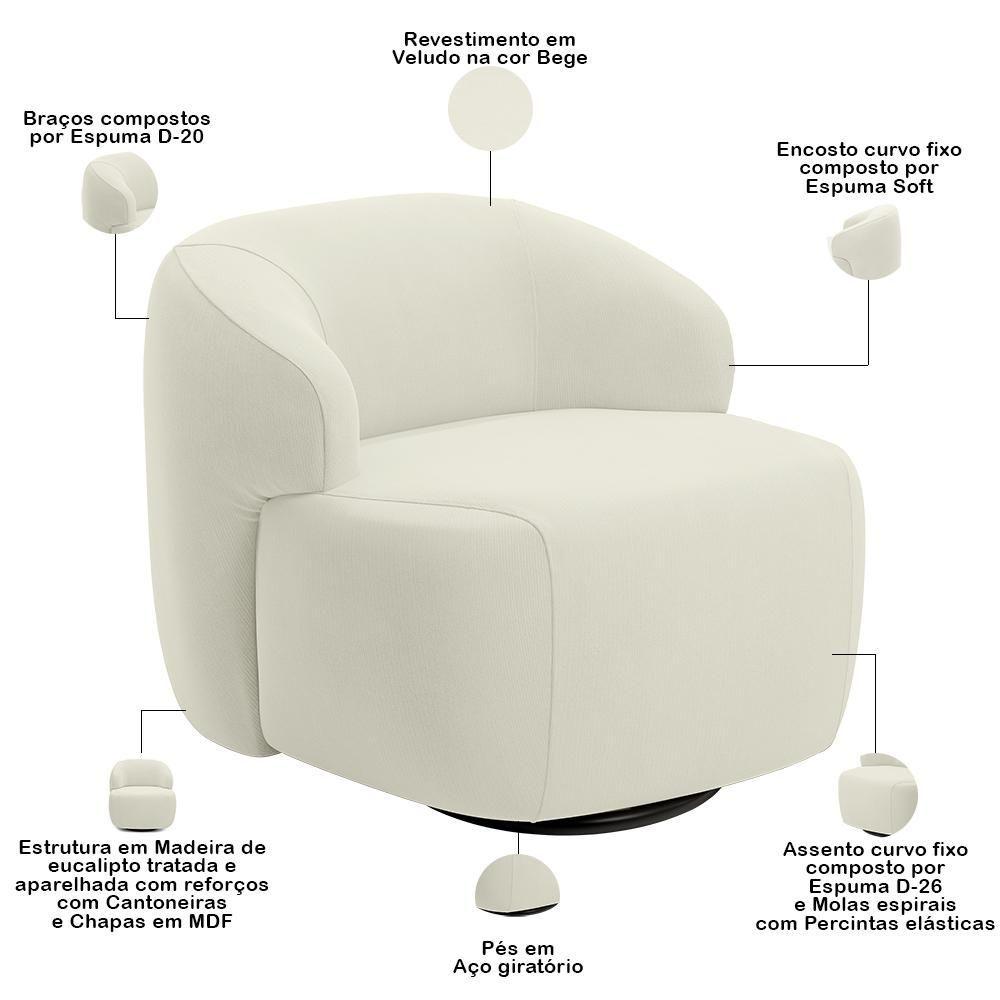 Sofá 4 Lugares Curvo Orgânico Com 02 Poltronas Living 280cm Barolo L06 Veludo Bege