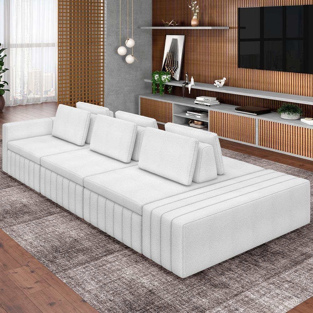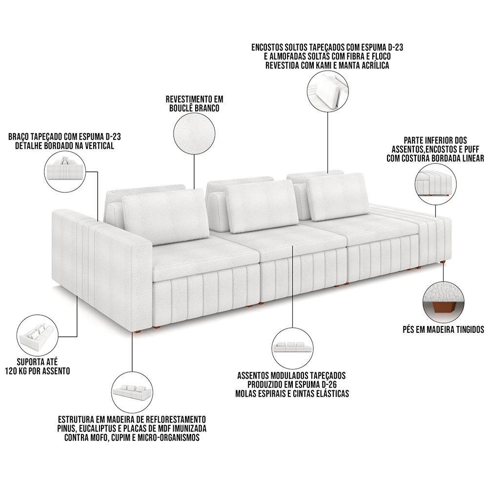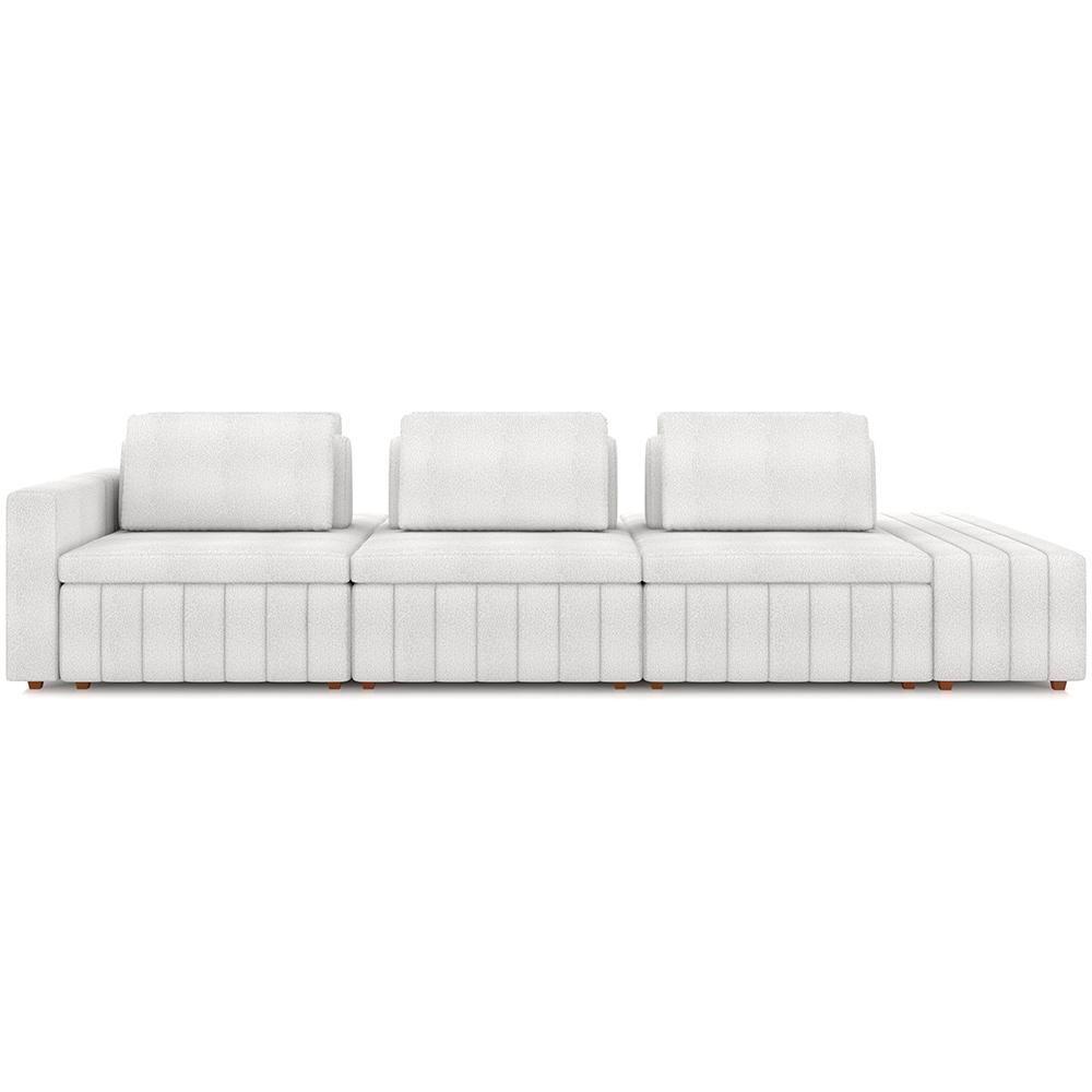 Sofá Ilha Com Puff Living 335cm Amber M03 Bouclê Branco