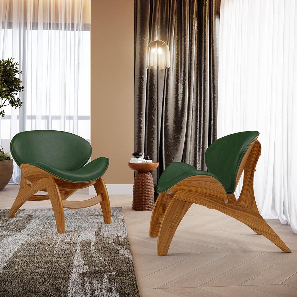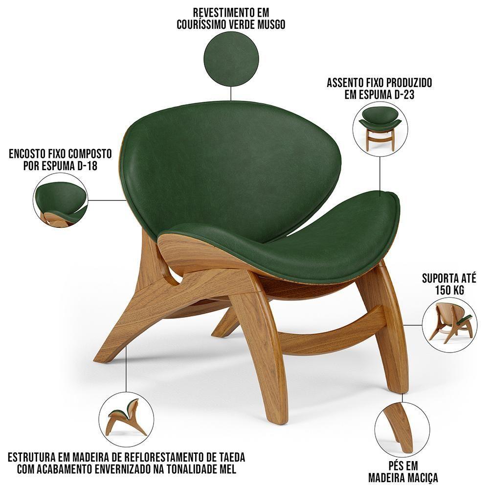 Kit 4 Poltronas Decorativa Orgânica Sala Living Kadosh L02 Couríssimo Verde Musgo