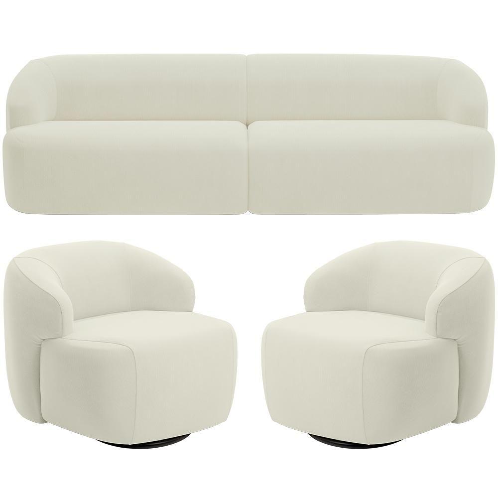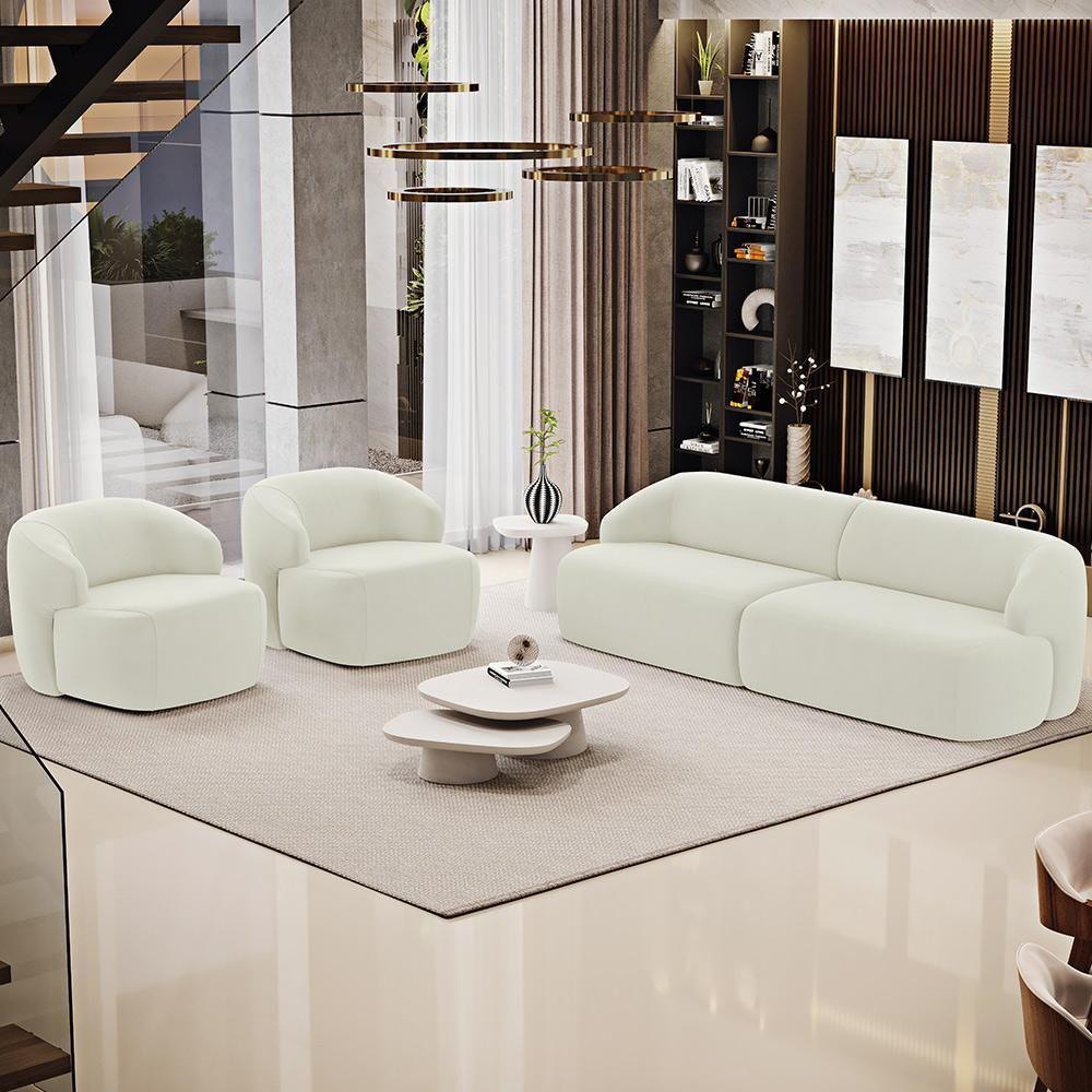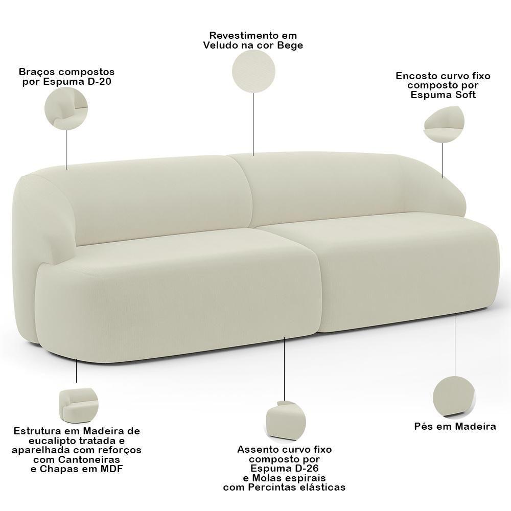 Sofá 3 Lugares Curvo Orgânico Com 02 Poltronas Living 250cm Barolo L06 Veludo Bege