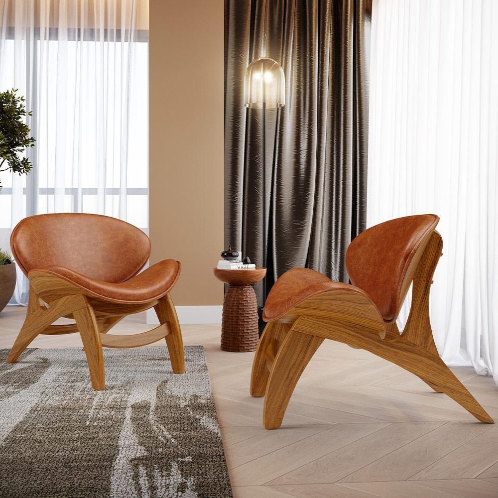 Kit 4 Poltronas Decorativa Orgânica Sala Living Kadosh L02 Couríssimo Camel