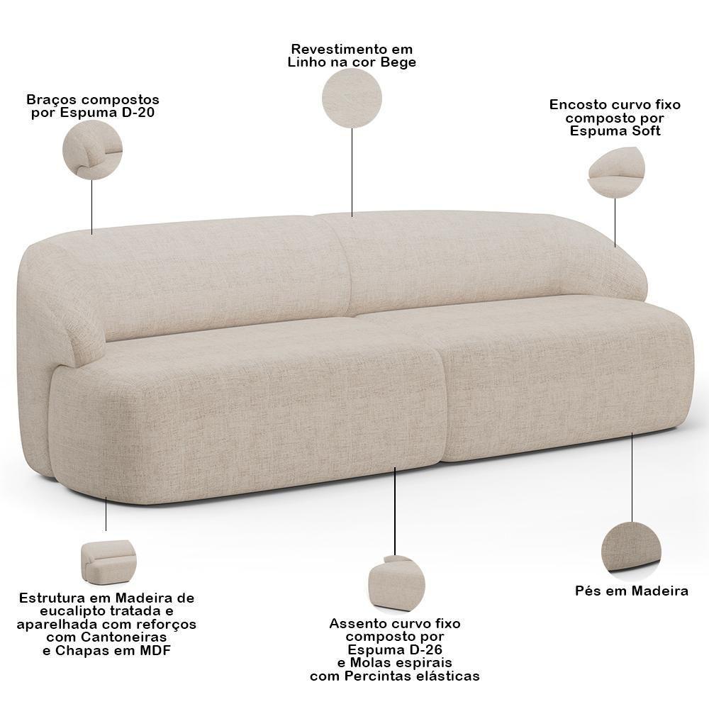 Sofá 4 Lugares Curvo Orgânico Com 02 Poltronas Living 280cm Barolo L06 Linho Bege