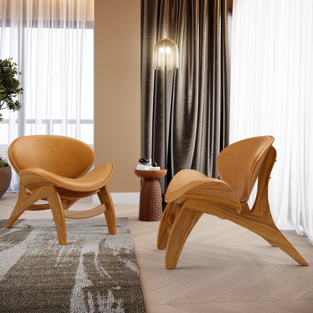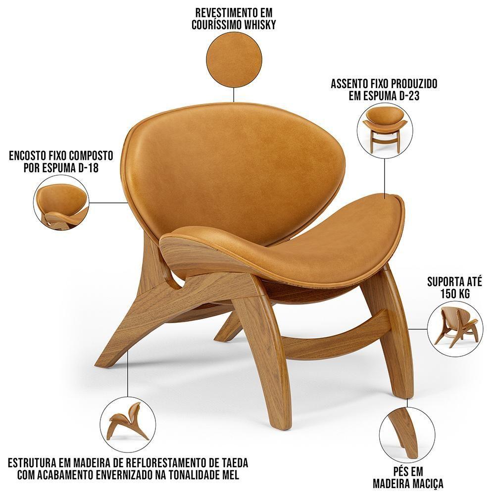 Kit 4 Poltronas Decorativa Orgânica Sala Living Kadosh L02 Couríssimo Whisky