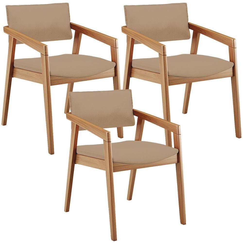 Kit 03 Cadeiras De Jantar Estar Living Giorgia L02 Linho Bege Escuro