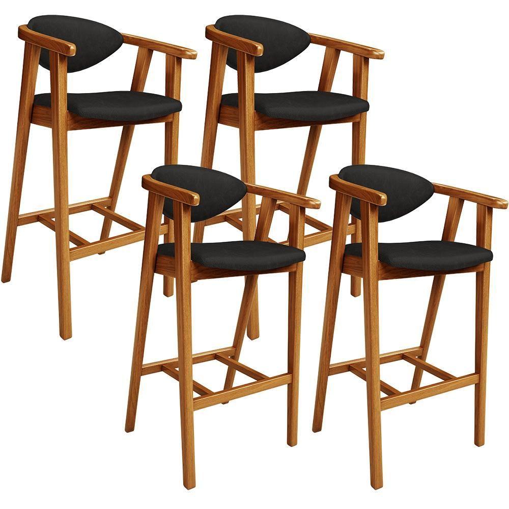 Kit 04 Banquetas Alta Cozinha Bancada Bar Sala De Jantar Fixa Cecília L02 Couríssimo Preto