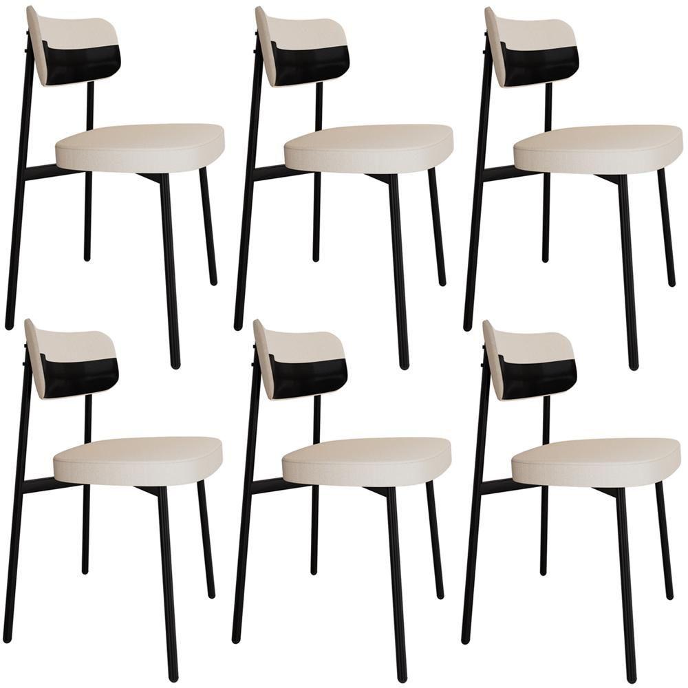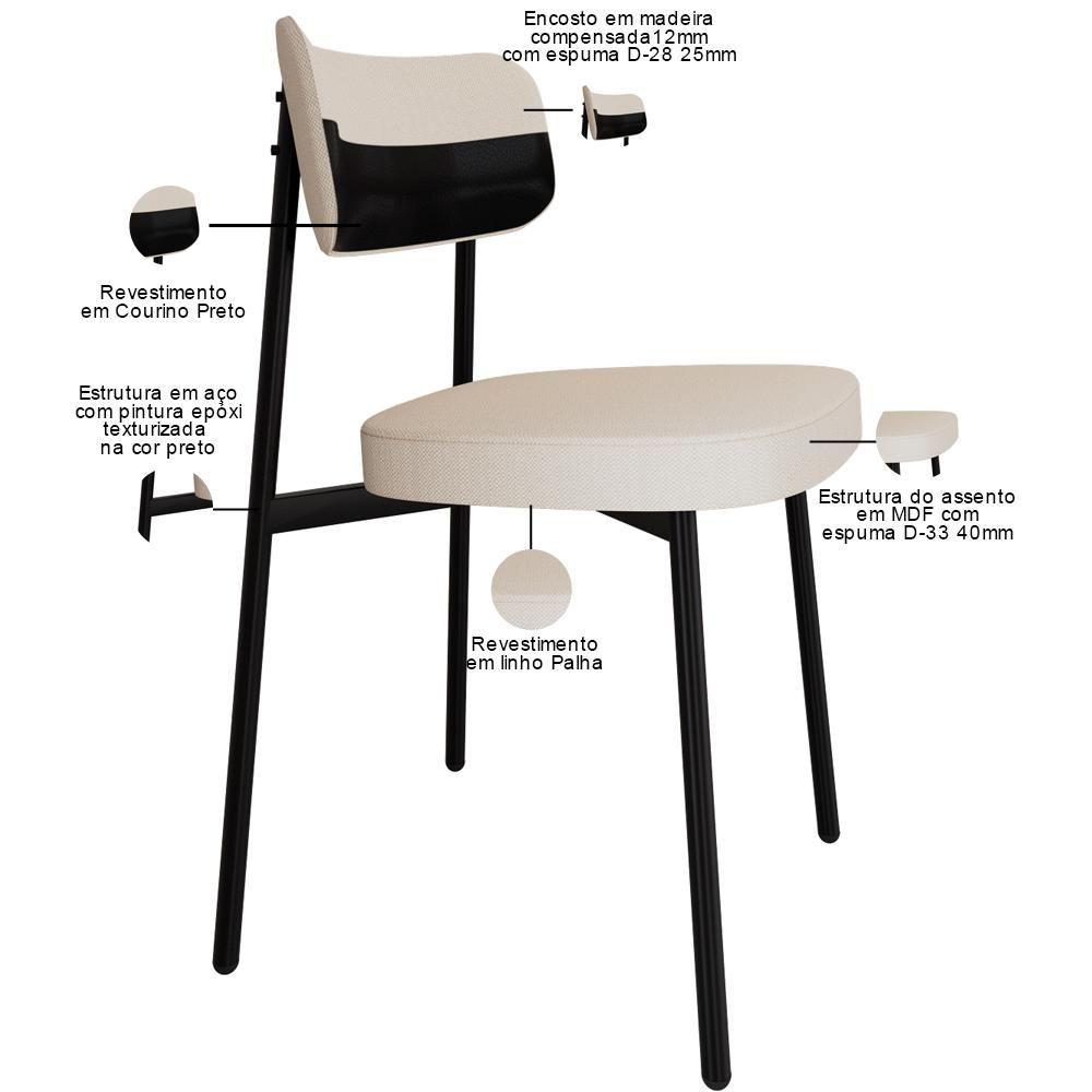 Kit 06 Cadeiras Estofada Para Sala De Jantar Astrid Preto C01 Linho Palha Courino Preto - Lyam Decor
