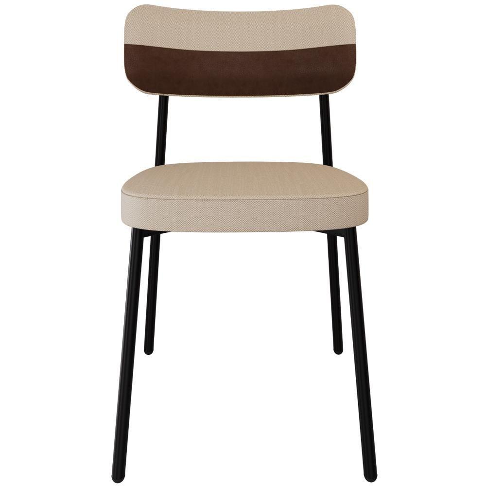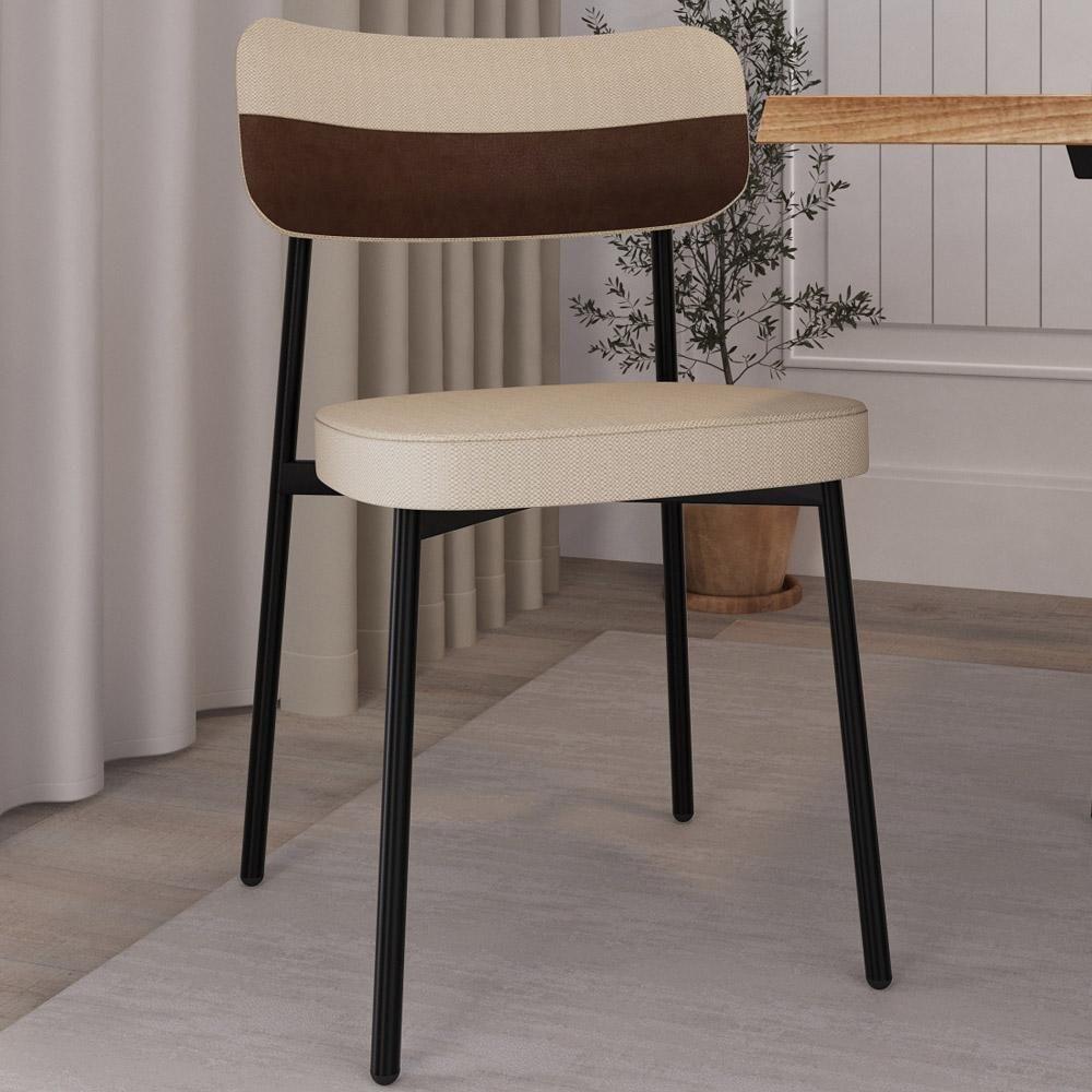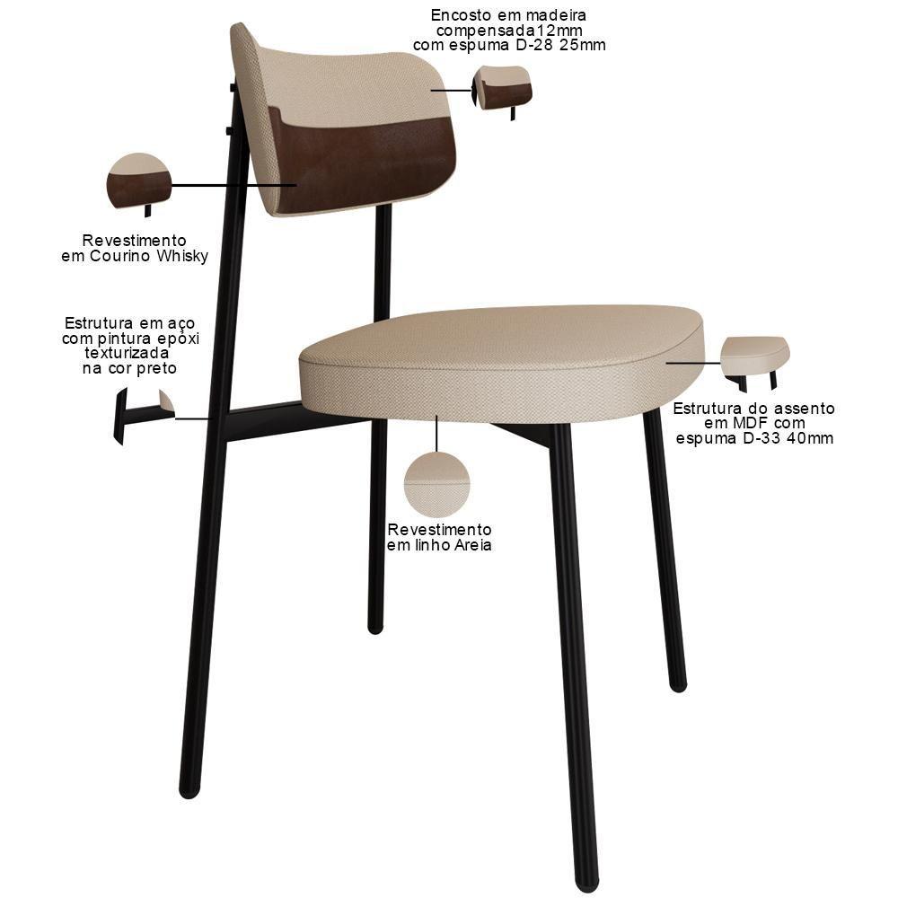 Kit 06 Cadeiras Estofada Para Sala De Jantar Astrid Preto C01 Linho Areia Courino Whisky - Lyam Decor