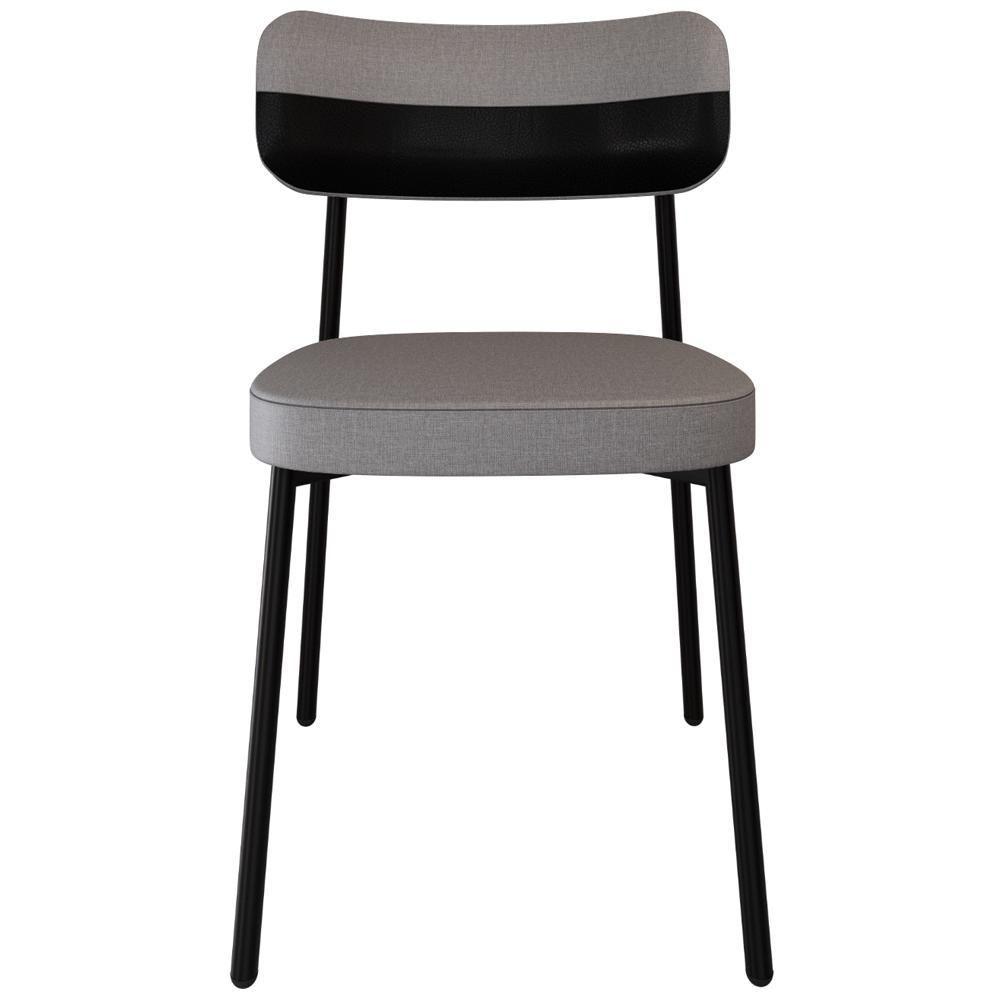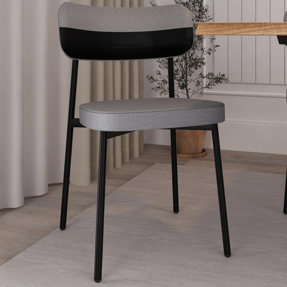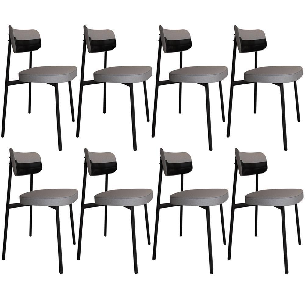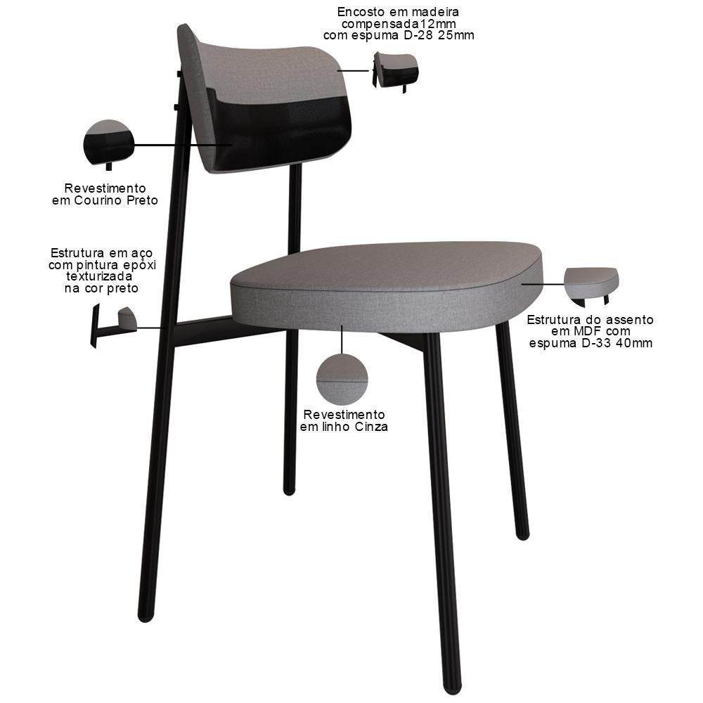 Kit 08 Cadeiras Estofada Para Sala De Jantar Astrid Preto C01 Linho Cinza Courino Preto - Lyam Decor