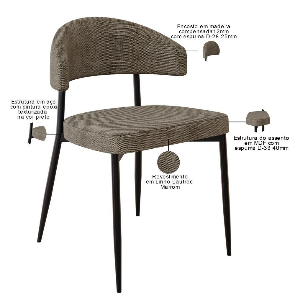 Kit 04 Cadeiras Estofada Para Sala De Jantar Serena Preto C01 Linho Lautrec Marrom - Lyam Decor