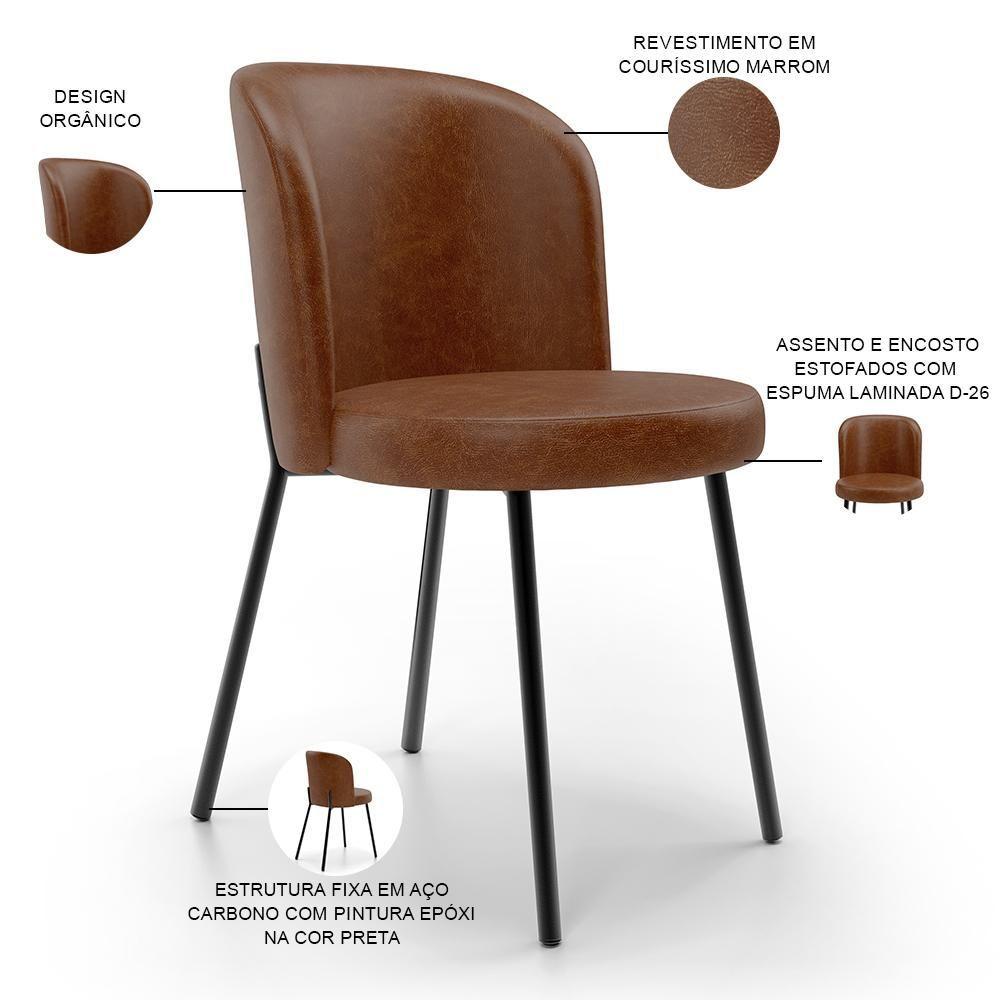 Kit 4 Cadeiras Sala De Jantar Estofada Gavi L02 Couríssimo Marrom - Lyam Decor