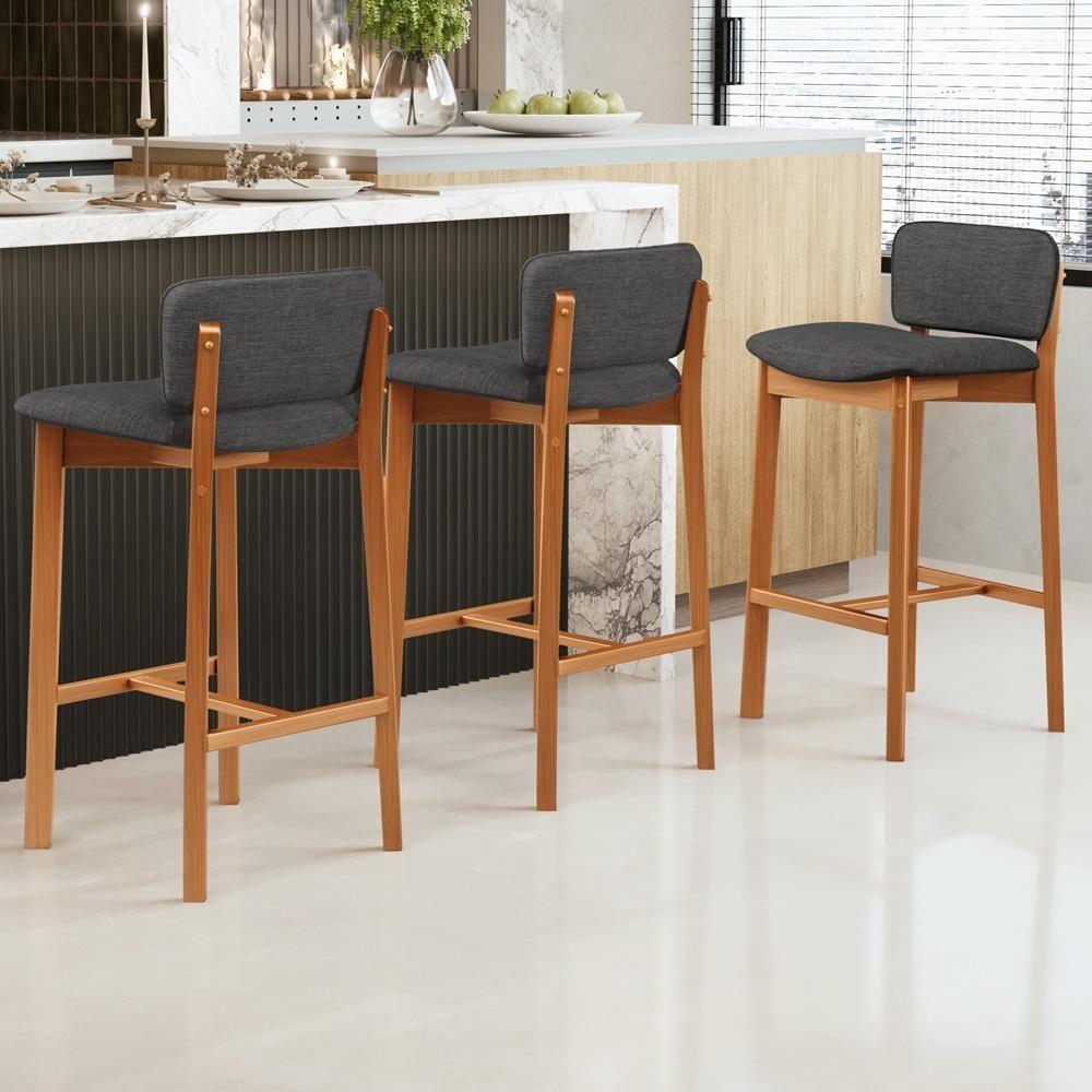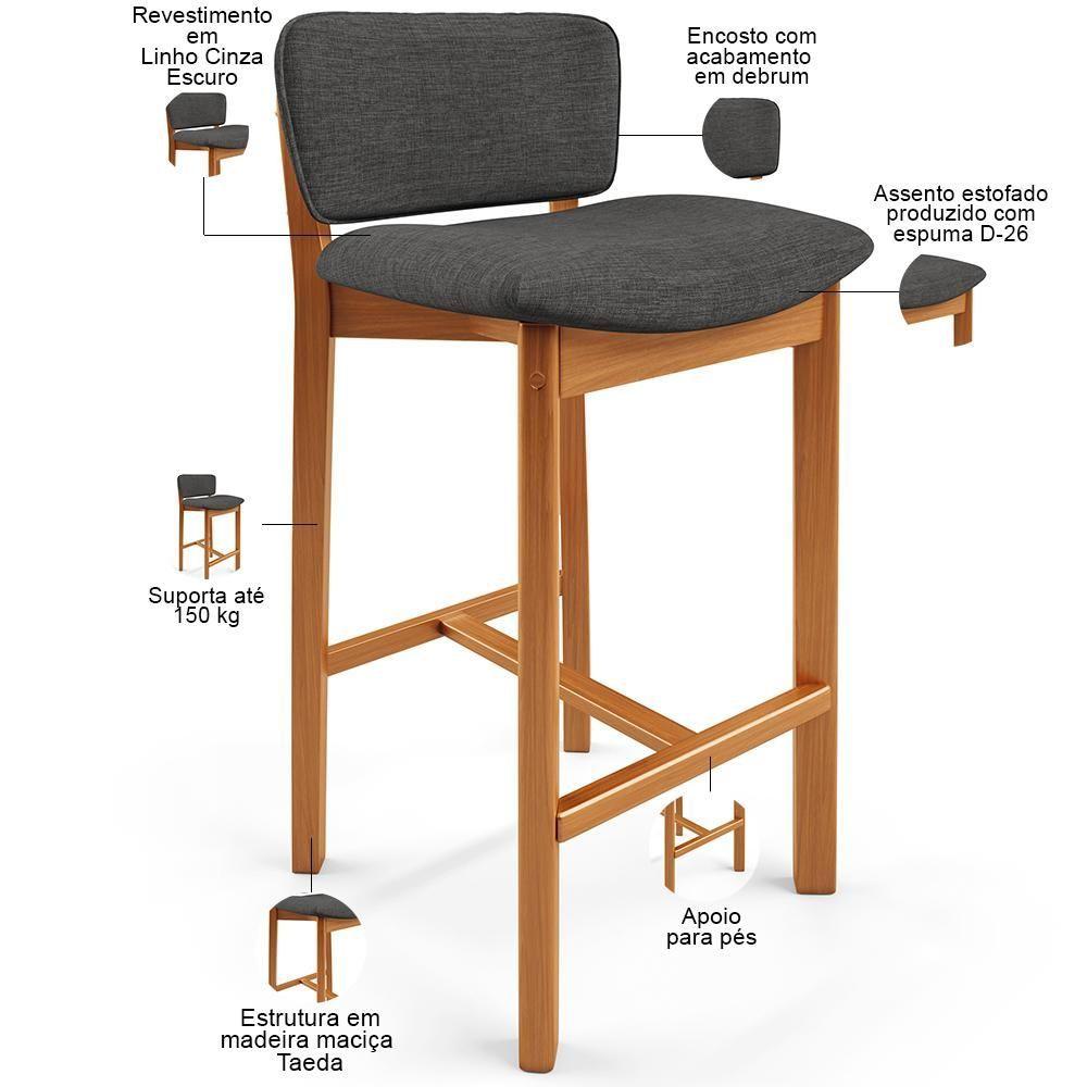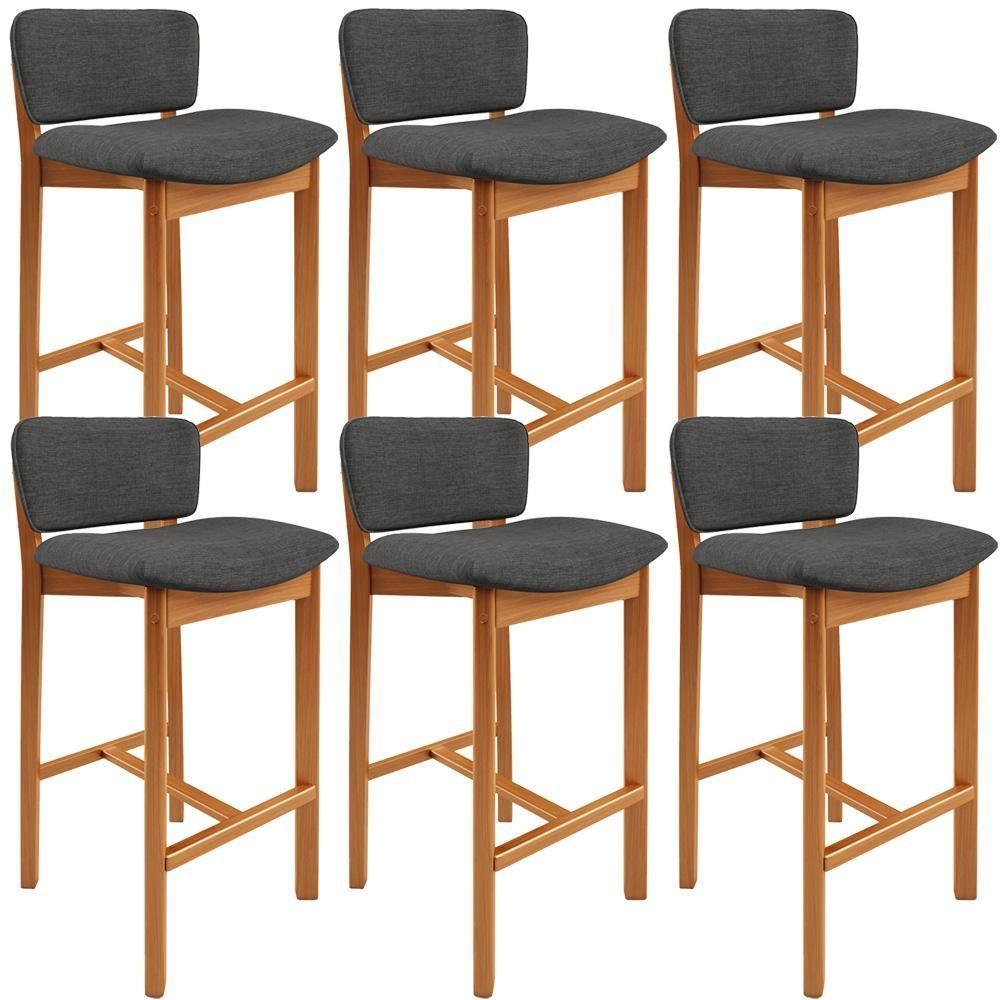 Kit 06 Banquetas Alta Para Cozinha Sala De Jantar Bar Dara L02 Linho Cinza Escuro - Lyam Decor
