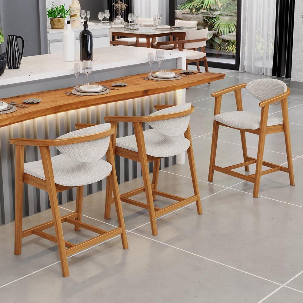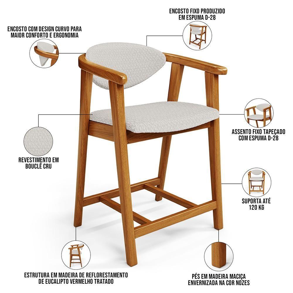 Kit 06 Banquetas Baixa Cozinha Sala De Jantar Bancada Cecília L02 Bouclê Cru - Lyam Decor