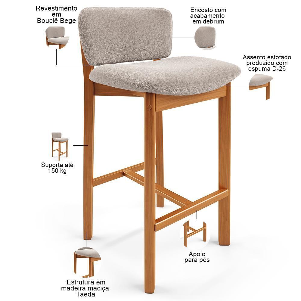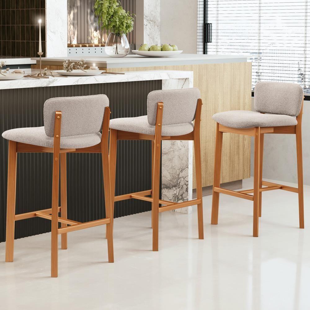 Kit 06 Banquetas Alta Para Cozinha Sala De Jantar Bar Dara L02 Bouclê Creme - Lyam Decor