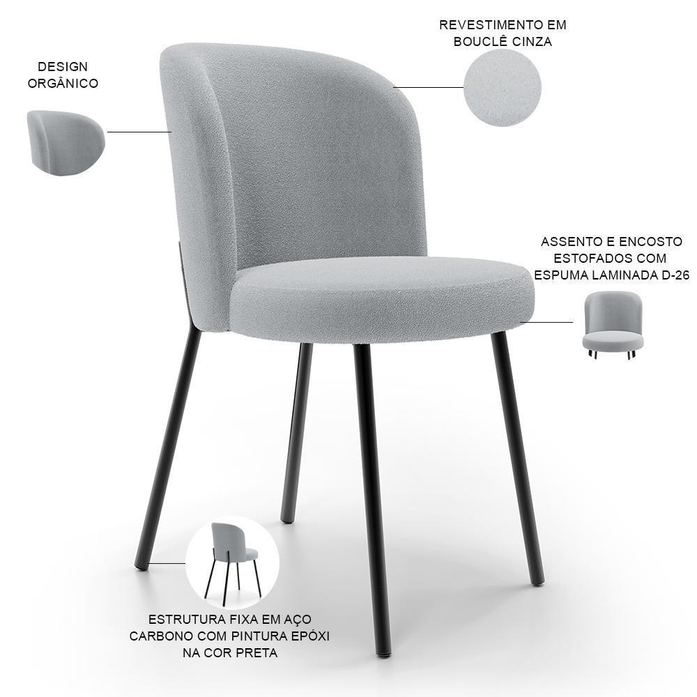 Kit 4 Cadeiras Sala De Jantar Estofada Gavi L02 Bouclê Cinza - Lyam Decor
