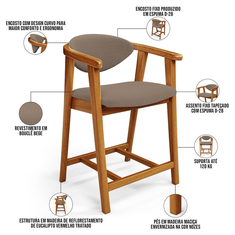 Kit 06 Banquetas Baixa Cozinha Sala De Jantar Bancada Cecília L02 Bouclê Bege - Lyam DecorTransforme qualquer ambiente em um espaço sofisticado com o Kit 06 Banquetas Baixa Cecília, da Lyam Decor.Esse kit de banquetas combina design moderno e funcionalidade, já que é ideal para cozinha, sala de jantar, bancada ou área gourmet. Além disso, são feitas com madeira de eucalipto vermelho tratado, o que garante durabilidade e sustentabilidade. Já o assento e encosto estofados com espuma de alta densidade proporcionam máximo conforto durante suas refeições ou momentos de descontração. A versatilidade dessa banqueta de madeira com encosto faz dela a escolha perfeita para quem busca elegância e praticidade em cada detalhe. Leve mais alegria aos momentos com a família e amigos com a Banqueta Cecília. Dimensões da Banqueta (L x A x P) 51 x 90 x 47 cm Medidas Internas: Altura do chão ao assento: 60 cm Assento livre (L x A x P): 44 x 4,5 x 46,5 cm Encosto livre (L x A): 41 x 22 cm Altura total do encosto: 33 cm Altura interna do braço: 18 cm Altura do chão ao início do braço: 76 cm Altura do chão ao apoio de pés: 17 cm Largura interna do apoio de pés: 27 cm Altura do apoio de pés: 4,5 cm Características: Estrutura em madeira de reflorestamento de eucalipto vermelho tratado. Revestimento em tecido Bouclê de alta qualidade na cor Bege. Assento e encosto fixos tapeçados com espuma D-28. Encosto com design curvo para maior conforto e ergonomia. Pés em madeira maciça envernizada na cor Nozes. Peso suportado: Até 120 kg cada. - Nunca sentar nos braços ou encosto do produto. - Por se tratar de estofado as medidas podem ter uma pequena variação de até 3 cm. - A tonalidade do produto real poderá ter ligeira variação devido o lote de tecidos. - Indicado para uso residencial, sua limpeza deve ser feita com pano levemente umedecido em água limpa, sem esfregar, não utilizar produtos abrasivos, desengordurantes, álcool ou solvente. Observações importantes: - Produto para uso residencial em ambiente interno, não devendo ficar exposto diretamente ao sol, calor e umidade excessivos. - Pode haver alguma diferença de tonalidade entre a imagem e o produto real, por conta do tratamento de imagens e a calibração de cores do seu monitor. - As imagens são meramente ilustrativas, não acompanham objetos de decoração e eletrônicos. - Ao receber a mercadoria, o cliente deve verificar as condições da embalagem, caso haja alguma não assine o de e com nossa para orientações. - Montagem, desmontagem e outras instalações serão de responsabilidade do cliente. Não nos responsabilizamos, no ato da , por subir escadas/elevadores ou pelo por guincho em apartamentos. Eventuais despesas são de responsabilidade do comprador. - Confira as dimensões do produto e certifique-se de que passará normalmente por supostos elevadores, portas, escadas e/ou corredores de sua residência. - Para mais informações, acesse nossa Central de . Altura da cadeira: 75 cm | Altura do assento a partir do solo: 60 cm | Color: Bege | ColorFamily: Bege | ColorSimple: Bege | ColorSupplier: Bege | Com apoio de braços: Sim | Com espaço de armazenamento: Não | Com estofado: Sim | Com rodas: Não | Cor: Bege | Cor da estrutura da cadeira: Nozes | Cor do assento: Bege | Cor do estofamento: Bege | Desenho do tecido: Liso | Diâmetro: na | É cadeira de balanço: Não | É dobrável: Não | É empilhável: Não | Espessura do assento: 4,5 cm | Estilo: Moderno | Fabricante: Lyam Decor | Firmeza: Firme | Largura: 51 cm | Largura da cadeira: 51 cm | Largura do assento: 44 cm | Material: Madeira, Tecido | Material do estofamento: Espuma D-28 | MaterialFamily: Madeira, Tecido | Model: Cecília | OriginCountry: | OriginState: PR | Peso: 48 Kg | Peso máximo suportado: 120 kg | ProductContents: 06 Banquetas | ProductHeight: 76 cm | ProductInstructions: Produto para uso em ambiente interno, nao devendo ficar exposto ao sol, calor e umidade excessivos. | ProductLength: 96 cm | ProductWarranty: 90 dias após do produto | ProductWeight: 48 kg | ProductWidth: 156 cm | Profundidade da cadeira: 47 cm | Profundidade do assento: 46,5 cm | Quantidade de Caixas de embalagem: 6 | Requer montagem: Não | SizeDescription: Altura: 76 cm x Largura: 156 cm x Profundidade: 96 cm | SupplierSimpleName: Kit 06 Banquetas Baixa Cozinha Sala de Jantar Bancada Cecília L02 Bouclê Bege - Lyam Decor | Tempo de montagem: na | Tipo de produto: Banqueta Baixa