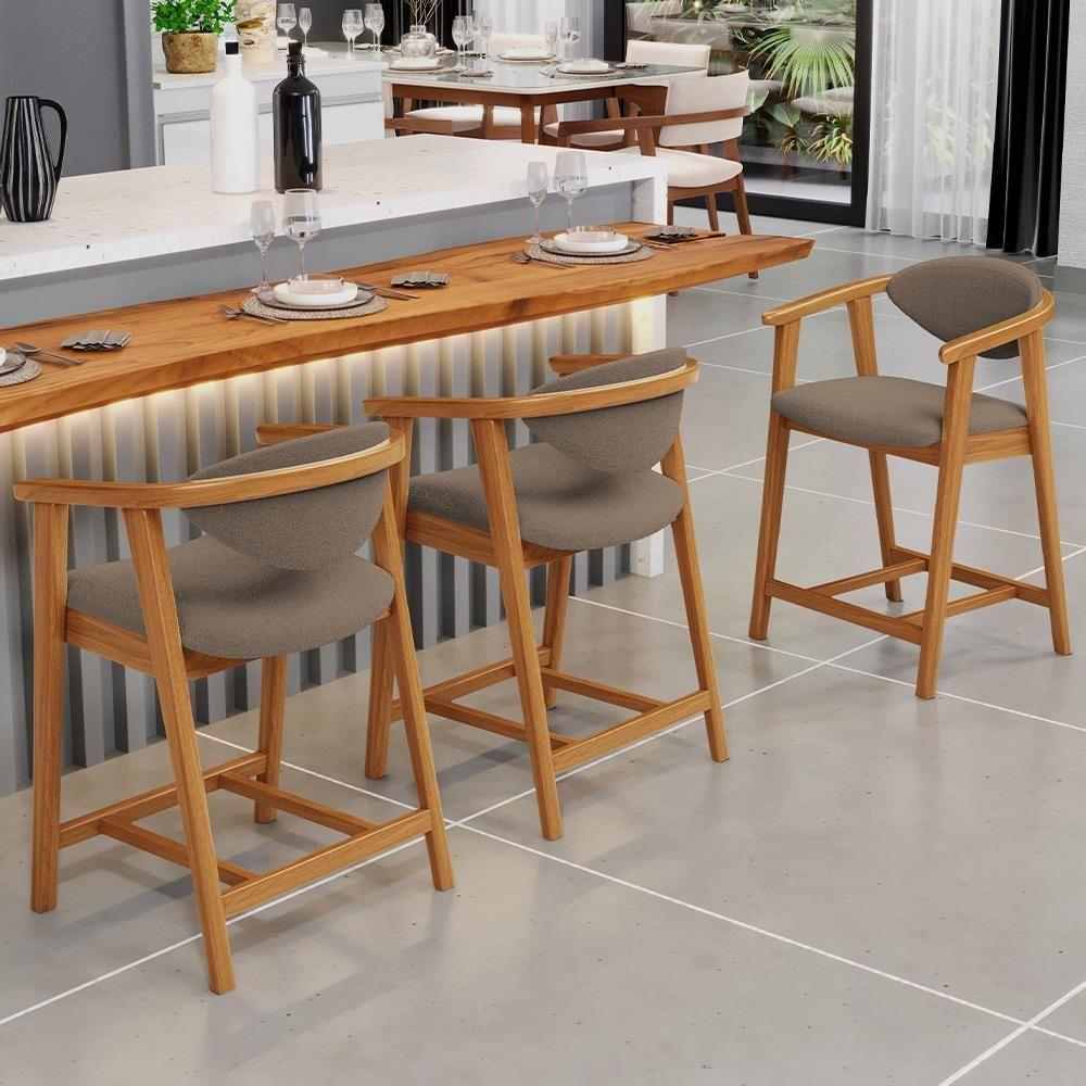Kit 06 Banquetas Baixa Cozinha Sala De Jantar Bancada Cecília L02 Bouclê Bege - Lyam Decor