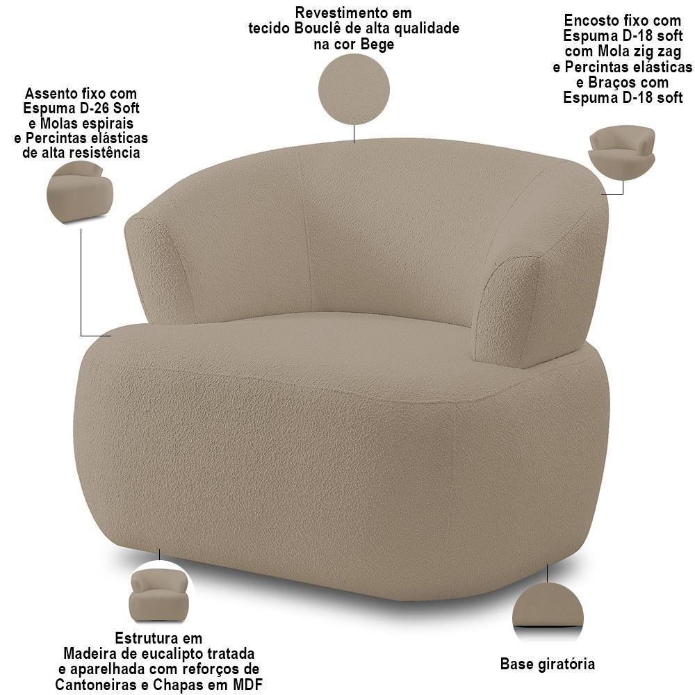 Kit 02 Poltronas Giratória Orgânica Para Sala Living Florea M05 Bouclê Bege - Lyam Decor