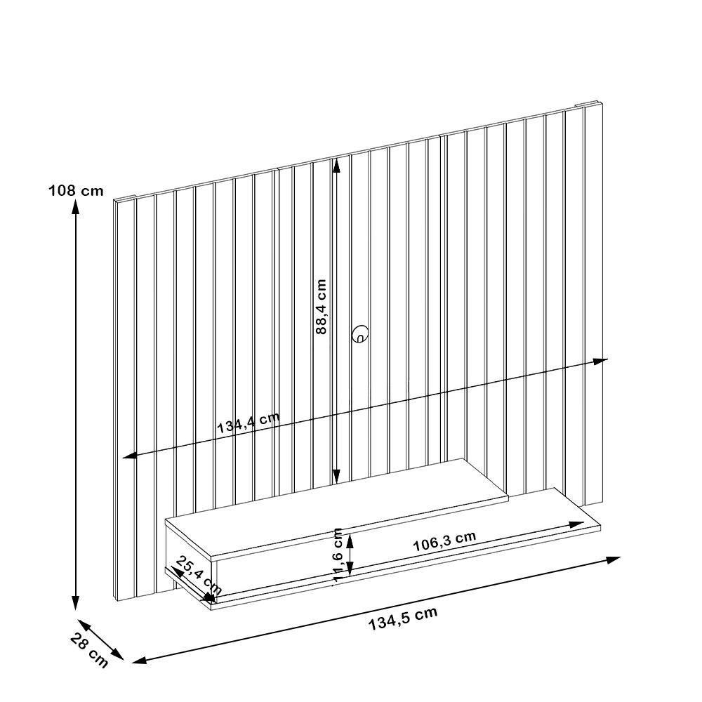 Painel Ripado Para Tv 55 Pol 134cm Lipe D05 Freijó Off White - Lyam DecorVocê está pronto para renovar o seu lar? Conheça o Painel Ripado para TV Lipe, da Lyam Decor, a peça que vai levar o design contemporâneo para dentro da sua casa!Com um estilo que acompanha as tendências mais quentes do mundo do design, esse painel suspenso é perfeito para quem busca funcionalidade e beleza em um só lugar. Ideal para espaços compactos, ele se destaca na sua sala de estar, no dormitório ou até mesmo nas áreas de lazer, trazendo um ar de modernidade e elegância a qualquer ambiente, principalmente, pelo acabamento ripado, que se encaixa harmoniosamente em qualquer decoração, seja ela minimalista, industrial ou rústica. Ah, e não se preocupe com o tamanho da sua televisão! Este painel foi desenvolvido para suportar TVs de até 55 polegadas, garantindo que você tenha a melhor experiência de visualização. Para completar, com o nicho semiaberto, você pode exibir seus aparelhos eletrônicos e itens decorativos de forma prática e estilizada. Dê vida à sua coleção de livros, plantas ou objetos de arte! O que está esperando? Dê um significado ao seu espaço e impressione a todos com seu bom gosto. Adicione ao seu carrinho e aproveite. Dimensões total do produto (L x A x P) 134,5 x 108 x 28 cm Medidas Internas Espaço livre para a TV: 134,4 x 88,4 cm Nicho aberto (L x A x P): 106,3 x 11,6 x 25,4 cm Características: Estrutura em MDP/MDF com acabamento das bordas em Melamina. Peças na cor Off White com impressão ultravioleta alto brilho e cor Freijó texturizada fosca. Painel ideal para TV de até 55 polegadas. 01 nicho semiaberto para equipamentos eletrônicos e itens decorativos. Painel com ripado decorativo e furação para passagem de cabos. Suporta até 40 kg no painel e 5 kg na base. - Produto entregue desmontado, acompanha manual de montagem. Sistema de montagem: Cavilhas, parafusos e minifix. - Este produto deve ser limpo com pano macio e seco. Não utilize produtos abrasivos como álcool e detergente, assim como esponjas rígidas ou palha de aço. - Proteja a superfície do móvel de objetos que transmitam calor ou umidade. Observações importantes: - Produto para uso residencial em ambiente interno, não devendo ficar exposto diretamente ao sol, calor e umidade excessivos. - Pode haver alguma diferença de tonalidade entre a imagem e o produto real, por conta do tratamento de imagens e a calibração de cores do seu monitor. - As imagens são meramente ilustrativas, não acompanham objetos de decoração e eletrônicos. - Ao receber a mercadoria, o cliente deve verificar as condições da embalagem, caso haja alguma não assine o comprovante de recebimento. - Montagem, desmontagem e outras instalações serão de responsabilidade do cliente. Não nos responsabilizamos, no ato da , por subir escadas/elevadores ou pelo transporte por guincho em apartamentos. Eventuais despesas são de responsabilidade do comprador. - Confira as dimensões do produto e certifique-se de que passará normalmente por supostos elevadores, portas, escadas e/ou corredores de sua residência. Altura: 108 cm | Color: OFF WHITE | ColorFamily: Off White | ColorSimple: Off White | ColorSupplier: Off White | Com compartimento para alto-falantes: Não | Com rodas: Não | Cor: Off White | Formato do móvel: Painel | Largura: 134,5 cm | Materiais do corpo: MDPMDF | Material: MDPMDF | Material da estrutura: MDPMDF | Material das corrediças: na | MaterialFamily: MDPMDF | Model: Lipe | OriginCountry: Brasil | OriginState: PR | Peso: 20 kg | ProductContents: 01 Painel | ProductHeight: 108 cm | ProductInstructions: Produto para uso em ambiente interno, nao devendo ficar exposto ao sol, calor e umidade excessivos. | ProductLength: 28 cm | ProductWarranty: 90 dias após o recebimento do produto | ProductWeight: 20 kg | ProductWidth: 134,5 cm | Profundidade: 28 cm | Quantidade de prateleiras: 2 | Requer montagem: Sim | SizeDescription: Altura: 108 cm x Largura: 134,5 cm x Profundidade: 28 cm | SupplierSimpleName: Painel Ripado Para TV 55 Pol 134cm Lipe D05 Freijó Off White - Lyam Decor | Tamanho máximo de TV: 55 Polegadas
