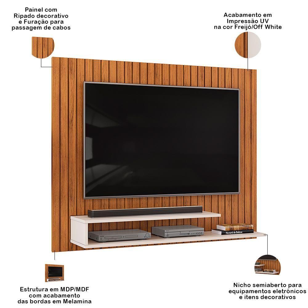 Painel Ripado Para Tv 55 Pol 134cm Lipe D05 Freijó Off White - Lyam Decor
