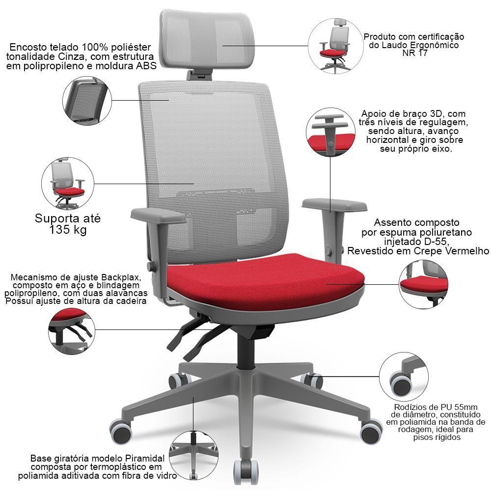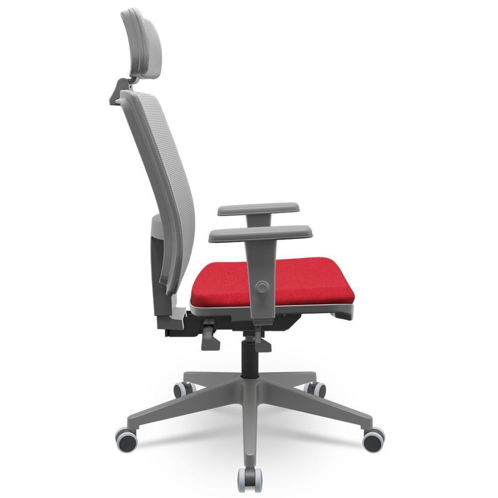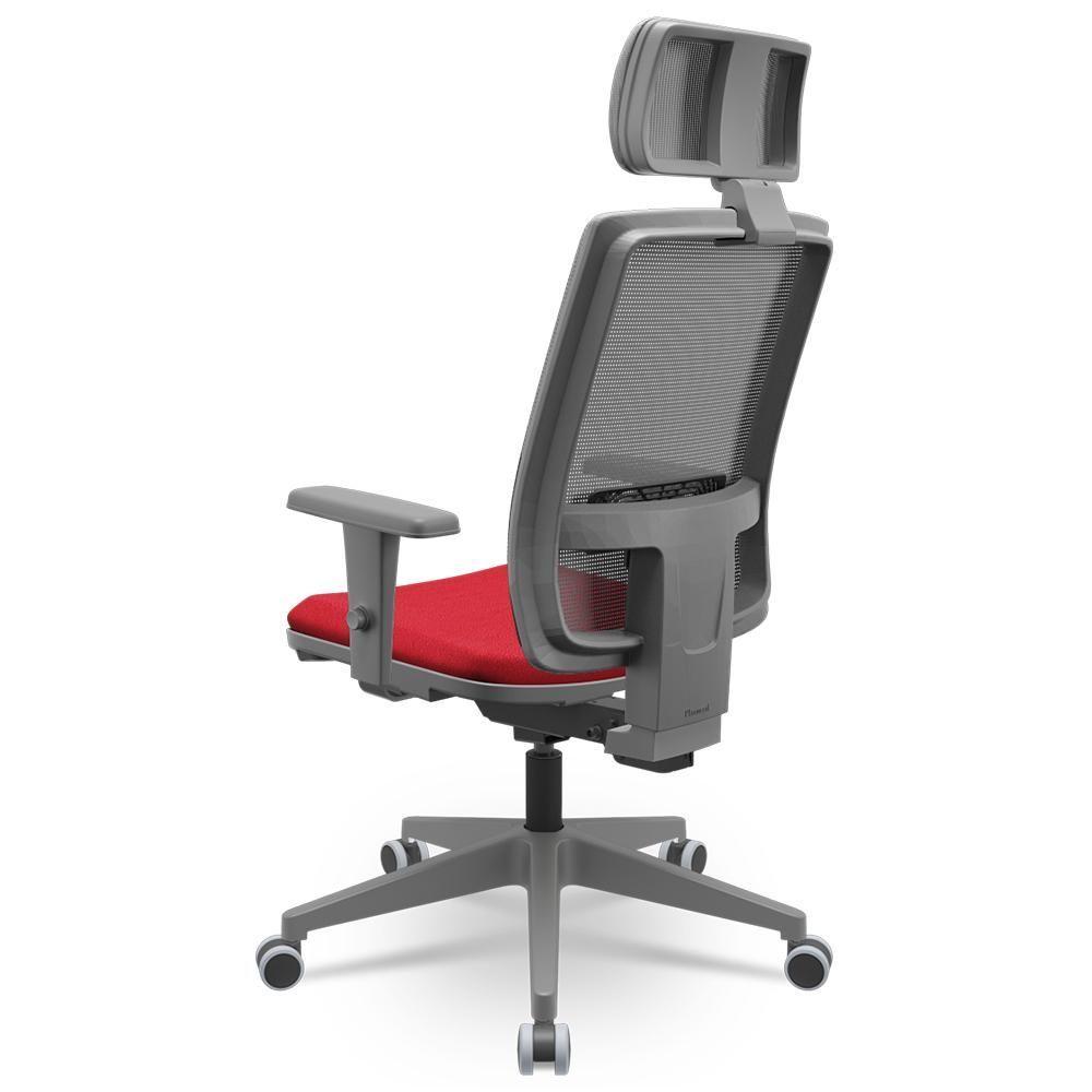 Kit 02 Cadeiras De Escritório Giratória Presidente Fritz P03 Tela Cinza Crepe Vermelho - Lyam Decor