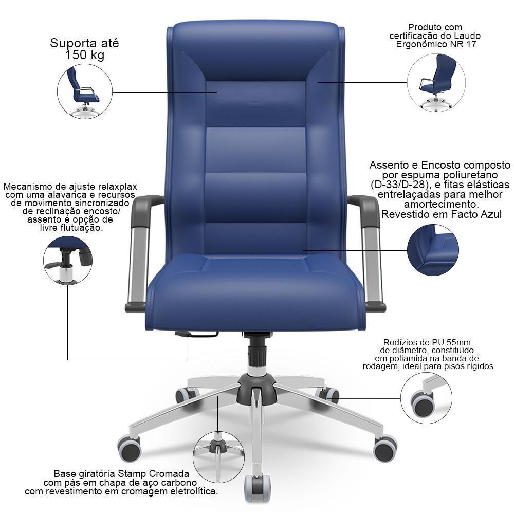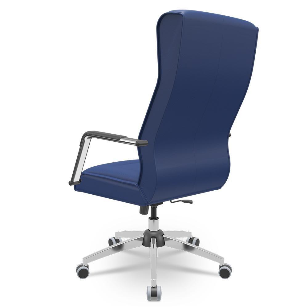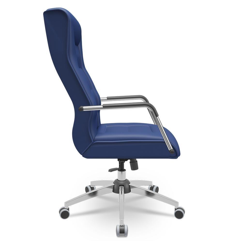 Kit 02 Cadeiras De Escritório Giratória Presidente Base Cromada Kirk P03 Vinil Azul - Lyam Decor