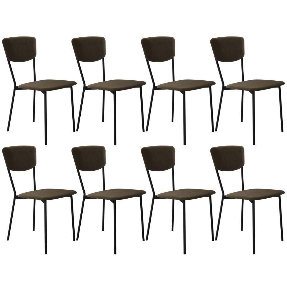 Kit 08 Cadeira Para Sala De Jantar Village Preto C01 Veludo Marrom Sand - Lyam Decor