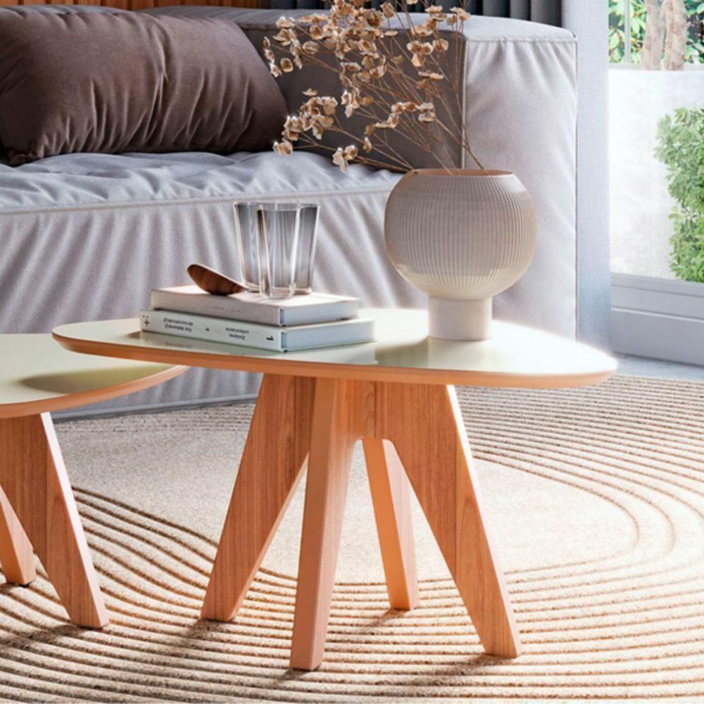 Mesa De Centro Para Sala De Estar Orgânica Alta Selly D03 Off White Freijó - Lyam Decor