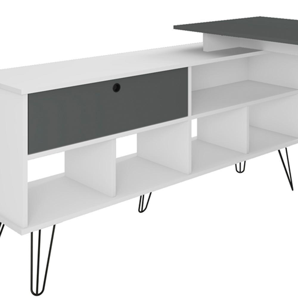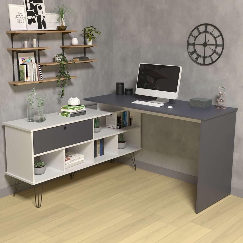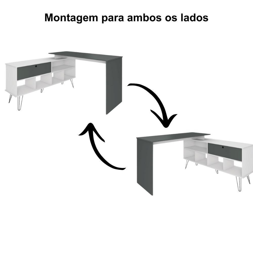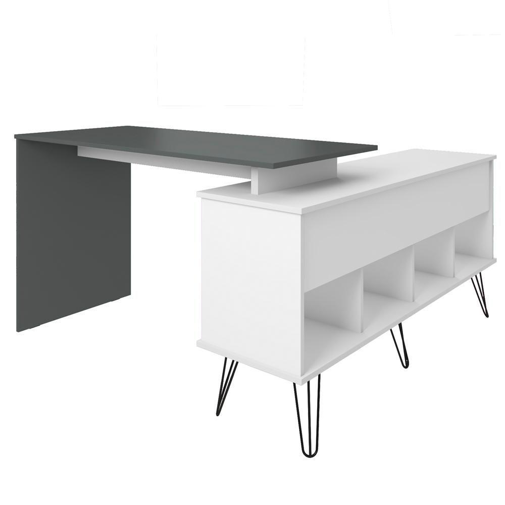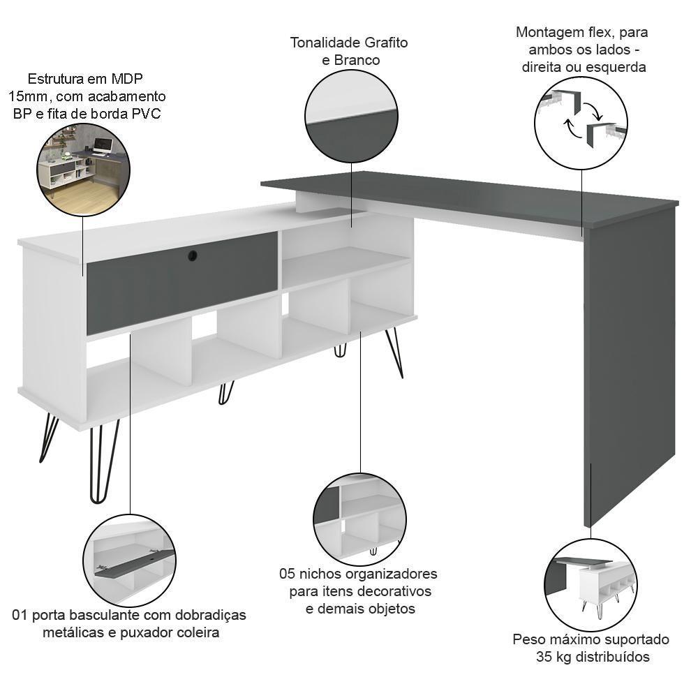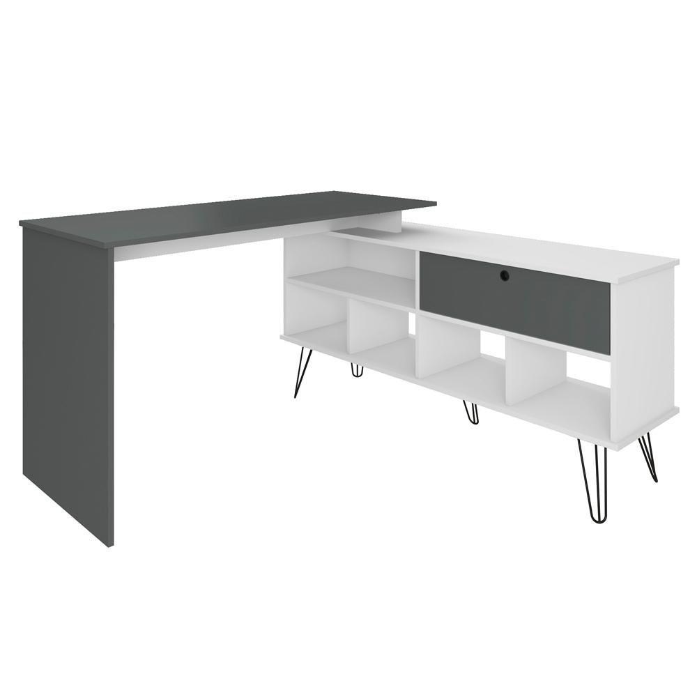 Mesa Para Escritório Escrivaninha Em L Home Office Kalil A02 Branco Grafito - Lyam Decor