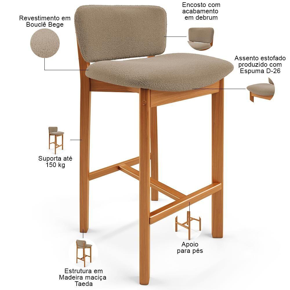 Kit 06 Banquetas Alta Para Cozinha Sala De Jantar Bar Dara L02 Bouclê Bege - Lyam DecorNa cozinha ou qualquer outro ambiente, o Kit 06 Banquetas Alta Para Cozinha Sala de Jantar Bar Dara se destaca por seu design clássico, sem deixar de exaltar a delicadeza deste modelo. Com uma estrutura de madeira que exala nobreza e sofisticação, essa banqueta estofada é o convite perfeito para momentos de confraternizar. O estofado macio, harmoniza com os demais elementos do ambiente, além do encosto proporcionar muito conforto enquanto se desfruta de momentos incríveis com aconchego. A vida é feita de pequenas celebrações, e essa banqueta está pronta para torná-las ainda mais especiais. Adicione ao seu carrinho e aproveite!Dimensões da Banqueta (L x A x P) 46,6 cm x 83 cm x 47 cmMedidas Internas Altura do chão ao assento: 74 cm Largura do assento: 44,5 cm Profundidade livre do assento: 37 cm Altura do encosto: 19 cm Largura do encosto: 39 cm Altura do apoio de pé ao chão: 29 cmCaracterísticas: Estrutura em madeira de reflorestamento Taeda com acabamento envernizado na tonalidade Castanho. Revestimento em Bouclê na cor Bege. Encosto com acabamento em debrum. Assento estofado fixo composto por espuma D-26. Suporta até 150 kg. Produto entregue montado.- Por se tratar de estofado as medidas podem ter uma pequena variação de até 3 cm. - A tonalidade do produto real poderá ter ligeira variação devido o lote de tecidos. - A limpeza deve ser feita com pano levemente umedecido em água limpa, sem esfregar, não utilizar produtos abrasivos, desengordurantes, álcool ou solvente.Observações importantes: - Produto para uso residencial em ambiente interno, não devendo ficar exposto diretamente ao sol, calor e umidade excessivos. - Pode haver alguma diferença de tonalidade entre a imagem e o produto real, por conta do tratamento de imagens e a calibração de cores do seu monitor. - As imagens são meramente ilustrativas, não acompanham objetos de decoração e eletrônicos. - Ao receber a mercadoria, o cliente deve verificar as condições da embalagem, caso haja alguma avaria não assine o comprovante de recebimento. - Montagem, desmontagem e outras instalações serão de responsabilidade do cliente. Não nos responsabilizamos, no ato da entrega, por subir escadas/elevadores ou pelo transporte por guincho em apartamentos. Eventuais despesas são de responsabilidade do comprador. - Confira as dimensões do produto e certifique-se de que passará normalmente por supostos elevadores, portas, escadas e/ou corredores de sua residência. MaterialFamily: Madeira e Espuma | OriginCountry: Nacional | ProductWarranty: 90 dias após o recebimento do produto | ProductWidth: 47 cm | Model: Banqueta Dara | Com estofado: Sim | Cor: Bege | Material: Madeira e Espuma | Estilo: Clássico | Tipo de produto: Banqueta | É dobrável: Não | Peso: 60 Kg | OriginState: PR | ProductContents: 06 Banquetas | SizeDescription: Altura: 83cm x Largura: 47cm x Profundidade: 47cm | Com rodas: Não | Largura: 47 cm | Largura do assento: 45 cm | É cadeira de balanço: Não | Largura da cadeira: 47 cm | Diâmetro: na | ProductHeight: 83 cm | ProductLength: 47 cm | Cor do assento: Bege | Color: Bege | SupplierSimpleName: Kit 06 Banquetas Alta Para Cozinha Sala de Jantar Bar Dara L02 Bouclê Bege - Lyam Decor | ProductWeight: 60 kg | Requer montagem: Não | Material do estofamento: Bouclê | ProductInstructions: Produto para uso residencial em ambiente interno, não devendo ficar exposto diretamente ao sol, calo | Com apoio de braços: Não | Com espaço de armazenamento: Não | Peso máximo suportado: 150 Kg | Quantidade de Caixas de embalagem: 1 | Profundidade da cadeira: 47 cm | Cor do estofamento: Bege | Espessura do assento: na | Desenho do tecido: Liso | É empilhável: Não | Profundidade do assento: 37 cm | Cor da estrutura da cadeira: Castanho | Fabricante: Lyam Decor | Altura do assento a partir do solo: 74 cm | Altura da cadeira: 83 cm