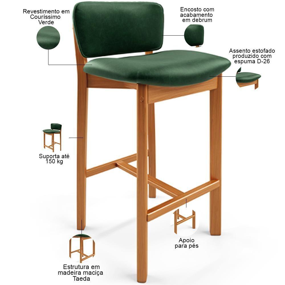 Kit 06 Banquetas Alta Para Cozinha Sala De Jantar Bar Dara L02 Couríssimo Verde Musgo - Lyam Decor