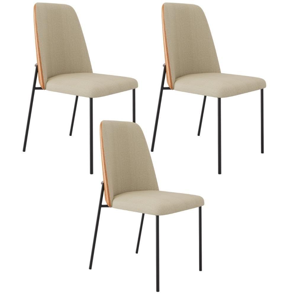 Kit 03 Cadeiras Decorativa Estofada Sala De Jantar Bella L02 Couríssimo Whisky Linho Bege - Lyam Decor