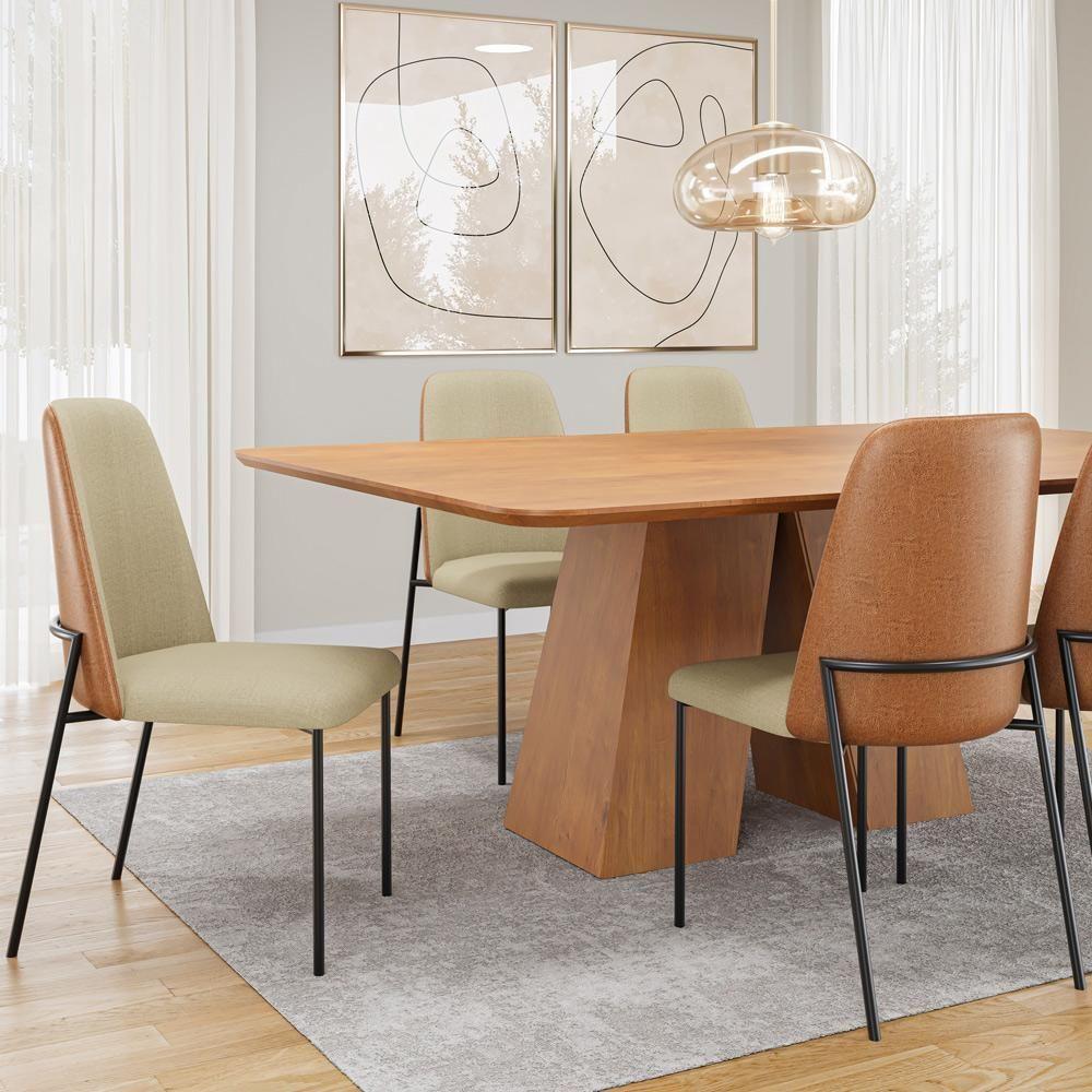 Kit 03 Cadeiras Decorativa Estofada Sala De Jantar Bella L02 Couríssimo Whisky Linho Bege - Lyam DecorO Kit 03 Cadeiras Bella é o equilíbrio perfeito entre estilo sofisticado, conforto e funcionalidade. Projetada para se destacar em qualquer ambiente, seja na sala de jantar, recepção ou em ambiente comercial, esta peça é ideal para quem quer investir em conforto e beleza. Produzida com materiais de alta qualidade e acabamento impecável, seu visual contemporâneo e detalhes cuidadosamente elaborados, a cadeira Bella transforma qualquer espaço, trazendo charme e praticidade ao dia a dia. Adquira já a sua!!Dimensões da Poltrona (L x A x P) 47 x 89 x 52 cmMedidas Internas: Altura do chão ao assento: 48 cmCaracterísticas: Estrutura fixa em aço carbono com pintura epóxi na cor Preto. Revestimento em Couríssimo na cor Whisky e Linho na cor Bege. Encosto e assento estofados com espuma D-23. Suporta até 120 kg.- Por se tratar de estofado as medidas podem ter uma pequena variação de até 3 cm. - A tonalidade do produto real poderá ter ligeira variação devido o lote de tecidos. - Indicado para uso residencial, sua limpeza deve ser feita com pano levemente umedecido em água limpa, sem esfregar, não utilizar produtos abrasivos, desengordurantes, álcool ou solvente.Observações importantes: - Produto para uso residencial em ambiente interno, não devendo ficar exposto diretamente ao sol, calor e umidade excessivos. - Pode haver alguma diferença de tonalidade entre a imagem e o produto real, por conta do tratamento de imagens e a calibração de cores do seu monitor. - As imagens são meramente ilustrativas, não acompanham objetos de decoração e eletrônicos. - Ao receber a mercadoria, o cliente deve verificar as condições da embalagem, caso haja alguma avaria não assine o comprovante de recebimento e entre em contato com nossa loja para orientações. - Montagem, desmontagem e outras instalações serão de responsabilidade do cliente. Não nos responsabilizamos, no ato da entrega, por subir escadas/elevadores ou pelo transporte por guincho em apartamentos. Eventuais despesas são de responsabilidade do comprador. - Confira as dimensões do produto e certifique-se de que passará normalmente por supostos elevadores, portas, escadas e/ou corredores de sua residência. NA